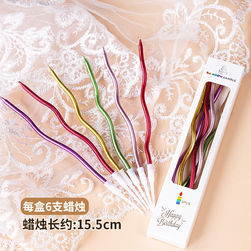ราคาขายส่ง 40 กล่อง ค่ะ 🎂แท่งเทียนโค้งสีสันสดใสสำหรับตกแต่งเค้กวันเกิดงานปาร์ตี้