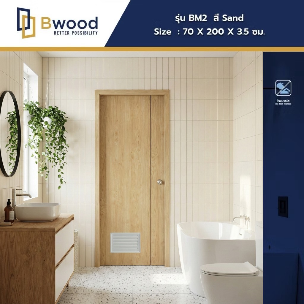 ส่งฟรี! | ประตู uPVC (รีดขึ้นรูปสำเร็จ) ห้องน้ำ ใช้ภายใน เจาะลูกบิด | Bwood BM | 70x200
