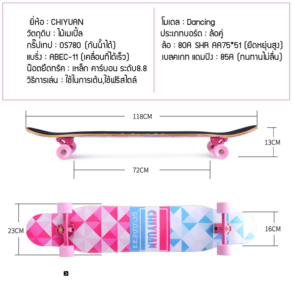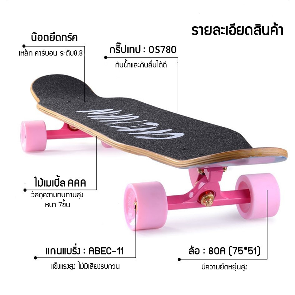 สเก็ตบอร์ด Xtreme Cruiser Maple DROP Longboard (สเก็ตบอร์ดครบชุด)