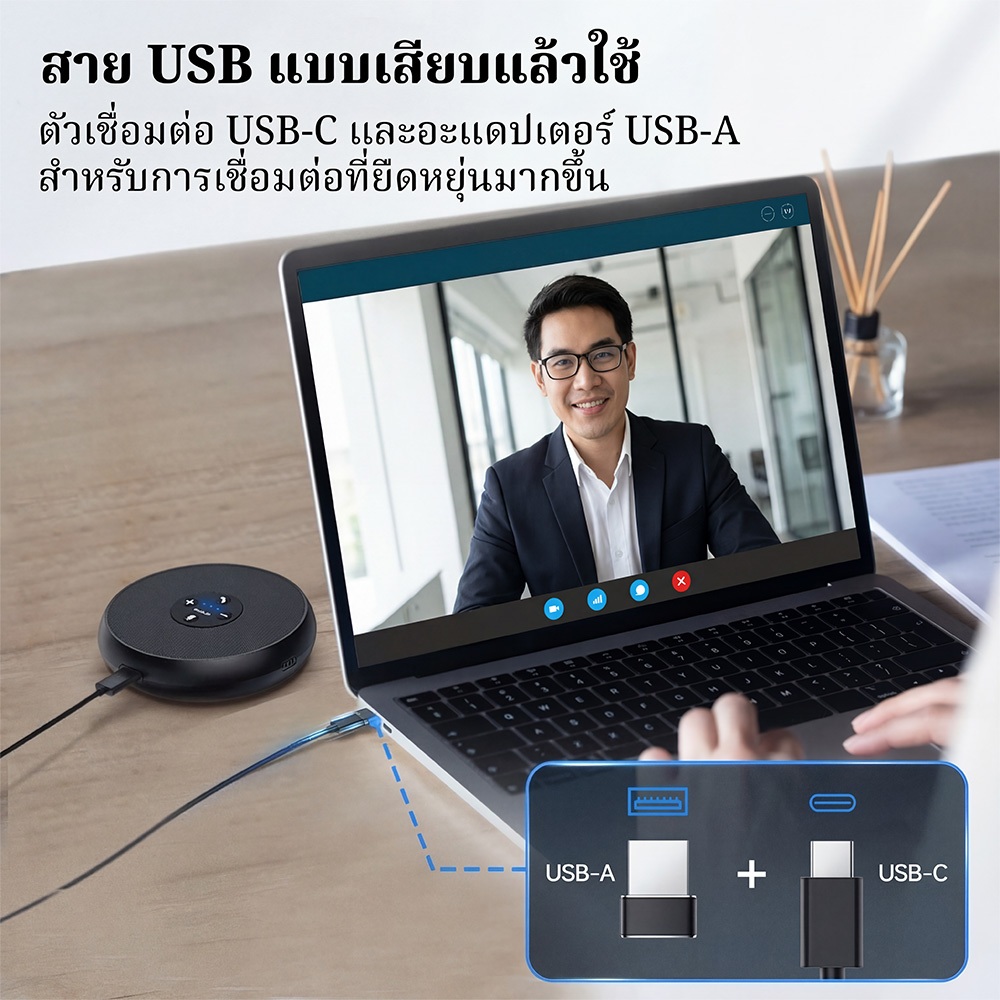 【คืนสินค้าได้ฟรีภายใน 15 วันโดยไม่ต้องระบุเหตุผล】Speakerphone Conference EMEET M1A ซูมได้รับการรับรอง 360°เสียงรถกระบะลําโพง ยูเอสบี สําหรับ5-8คนสําหรับซูมทีม,ทำงานจากระยะไกล/การศึกษาออนไลน์/ไลฟ์ขายของ