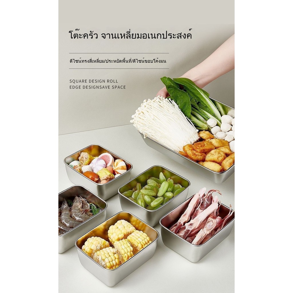 กล่องสแตนเลส หนาขึ้นพร้อมฝาปิด เกรดอาหาร ใช้ในเชิงพาณิชย์แบบสี่เหลี่ยม