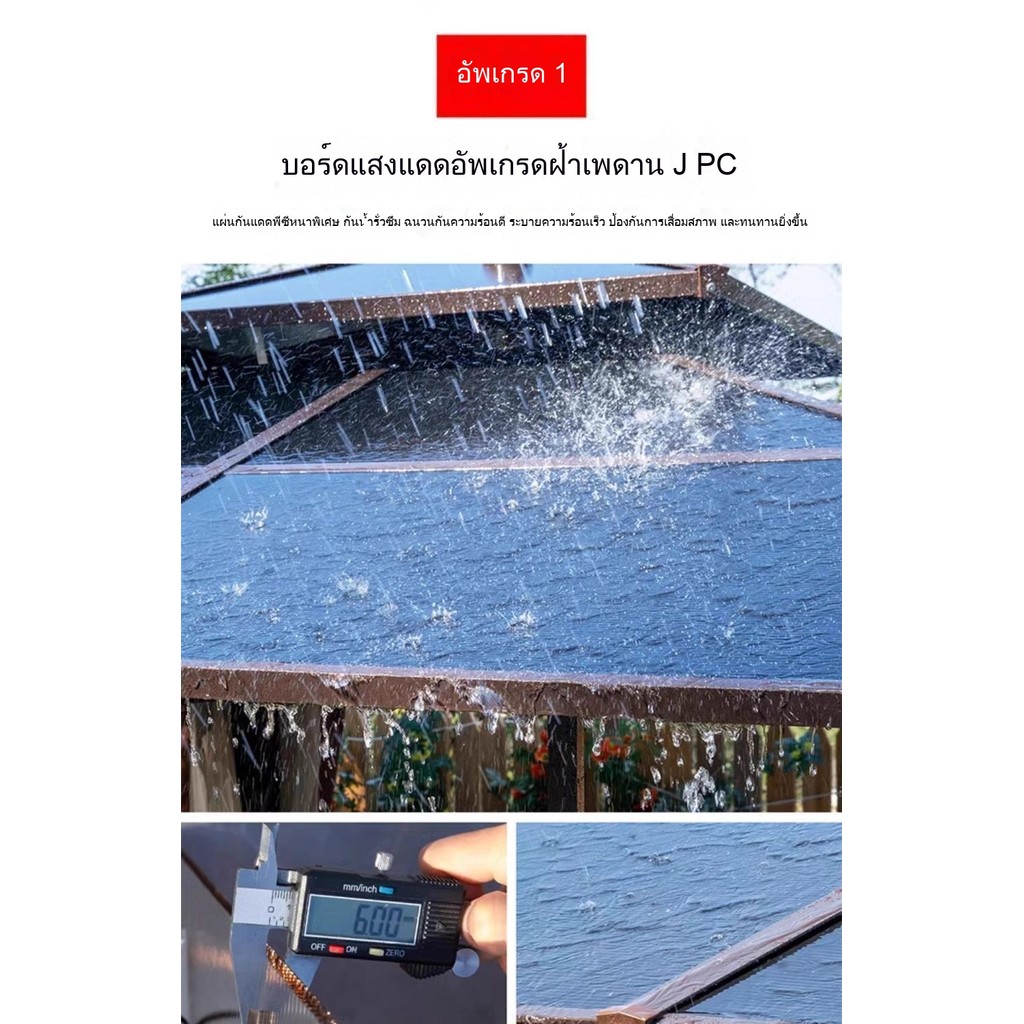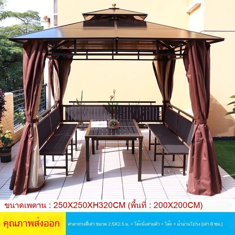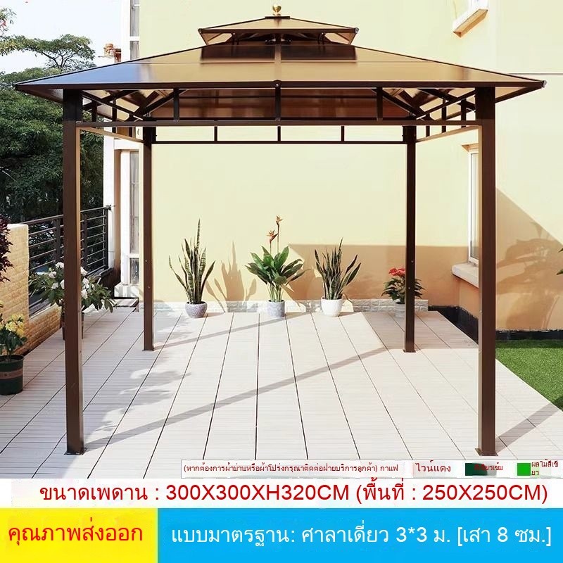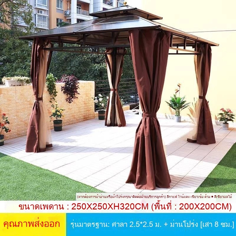 ศาลาเอนกประสงค์อลูมิเนียม พับได้ ตั้งนอกบ้าน สวนวิลล่า กันแดดกันฝน ขนาดใหญ่ 3x3m สีน้ำตาล+ขาว