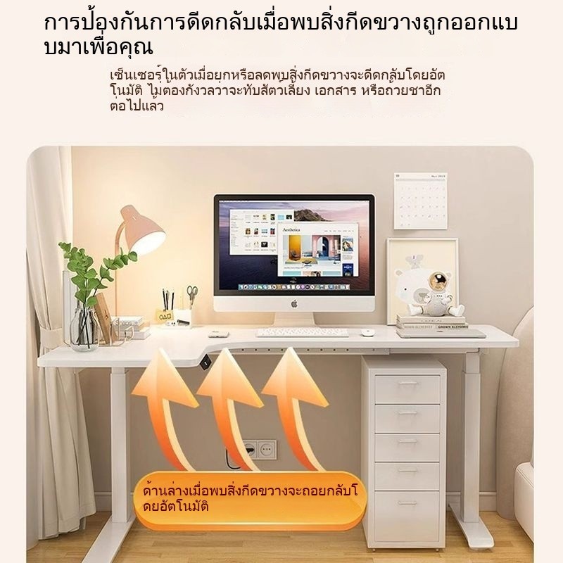 โต๊ะทำงานไฟฟ้า ปรับระดับ สูงต่ำ ทรง L ไม้แท้ สำหรับ บ้าน และ สำนักงาน โต๊ะเรียน โต๊ะคอมพิวเตอร์ มุมห้อง