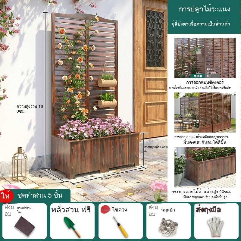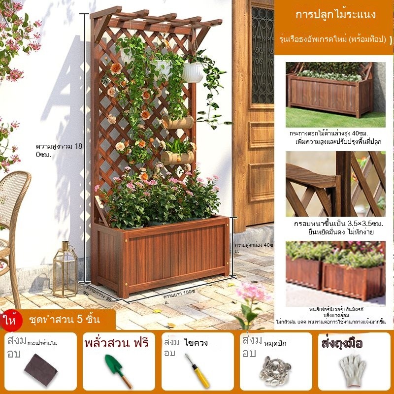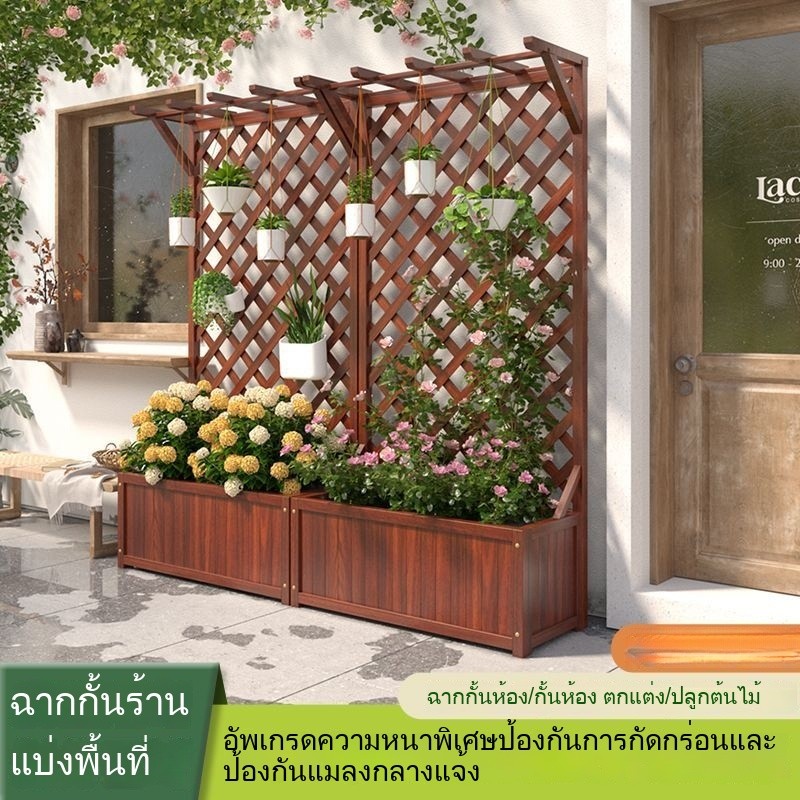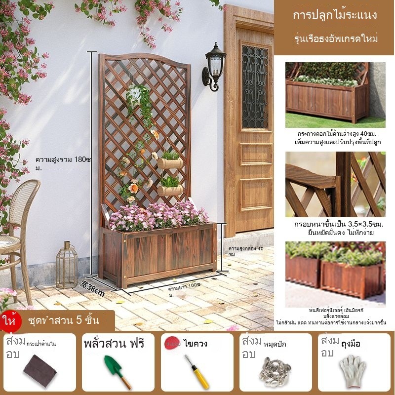 ชั้นวางดอกไม้และรั้วไม้กันการสลายตัว สำหรับสวนและระเบียง แบบระแนงและปลูกพืช ทนแดดทนฝน 33665