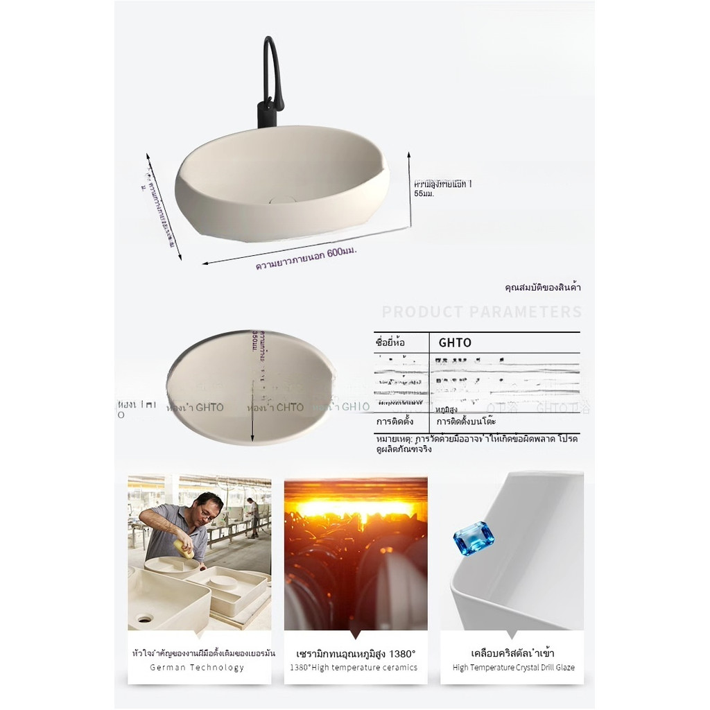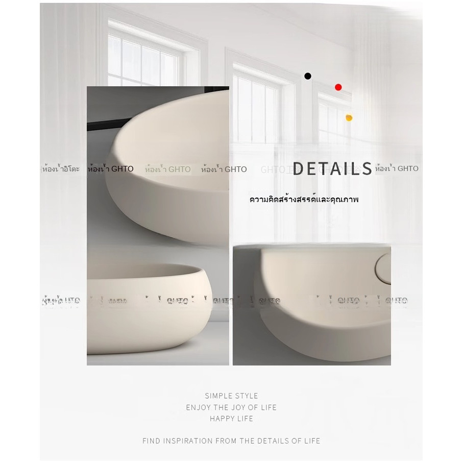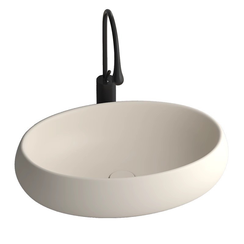 ชามเซรามิกแบบเรียบง่ายและมีเอกลักษณ์ อ่างล้างมือทรงรีสไตล์ครีม ระเบียง อ่างล้างหน้าในห้องน้ำ