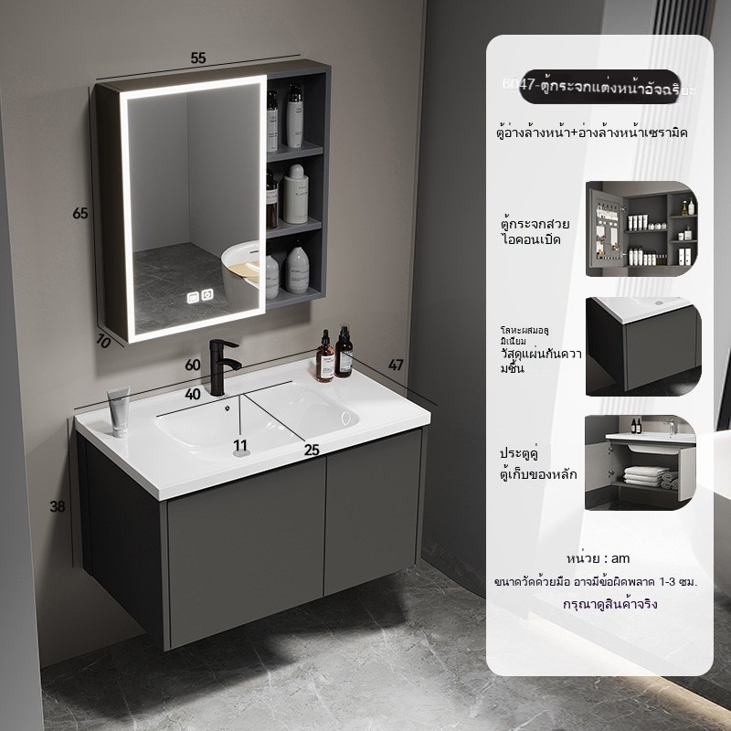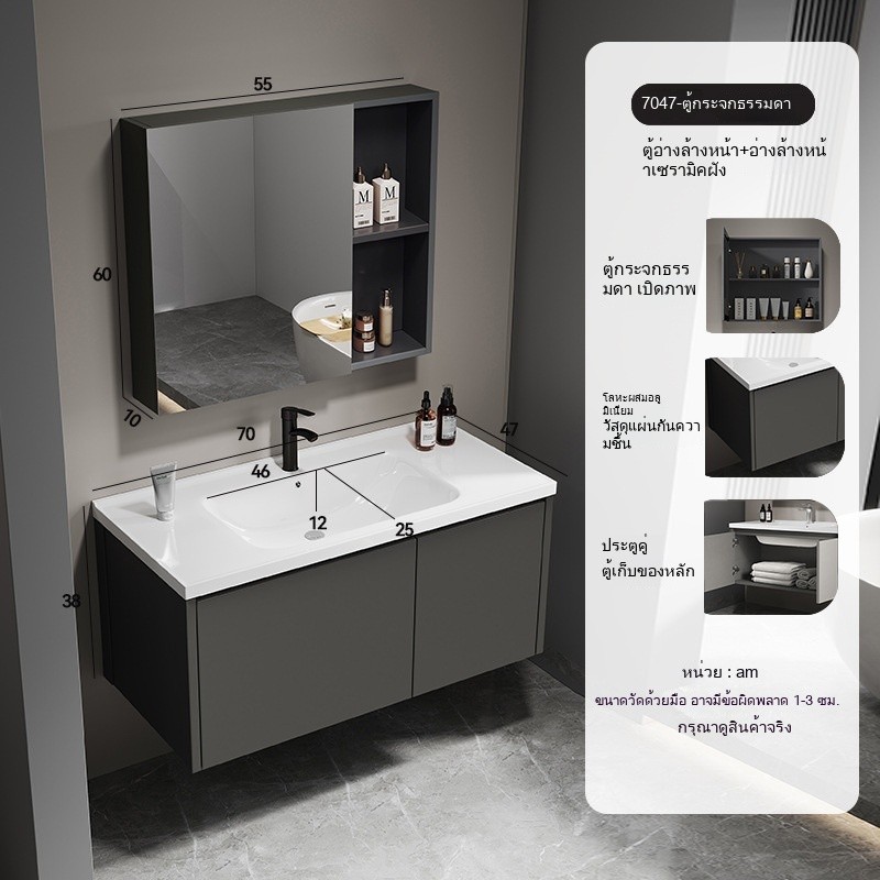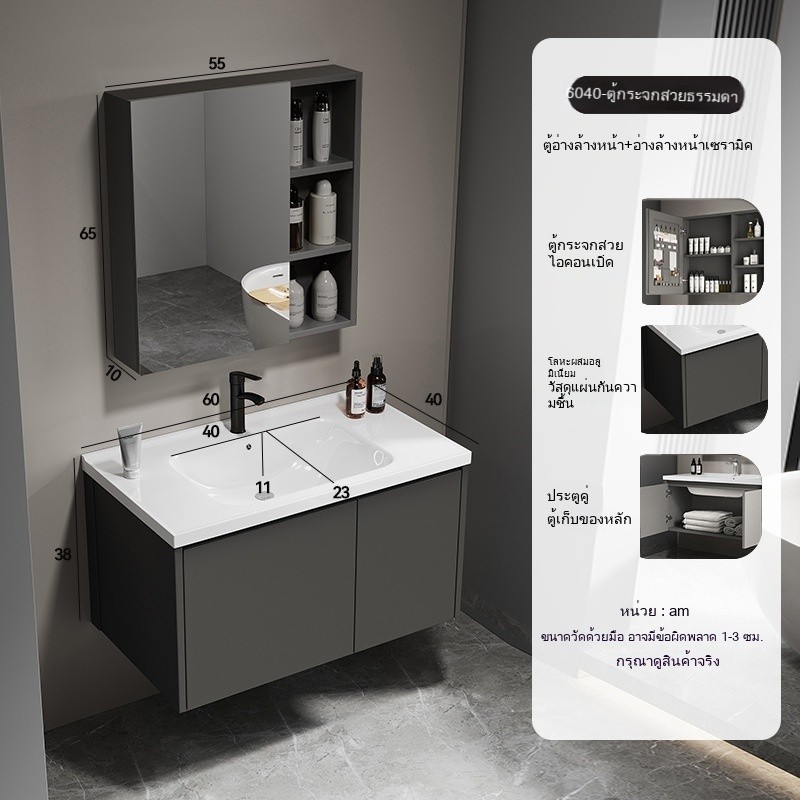 อลูมิเนียมรังผึ้งหนาชุดตู้ห้องน้ำพร้อมอ่างล้างหน้า ตู้กระจกอ่างล้างหน้าเซรามิกในห้องน้ำ