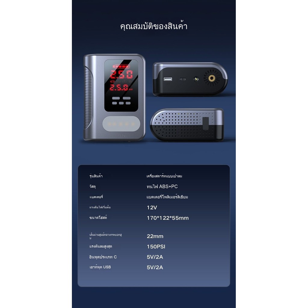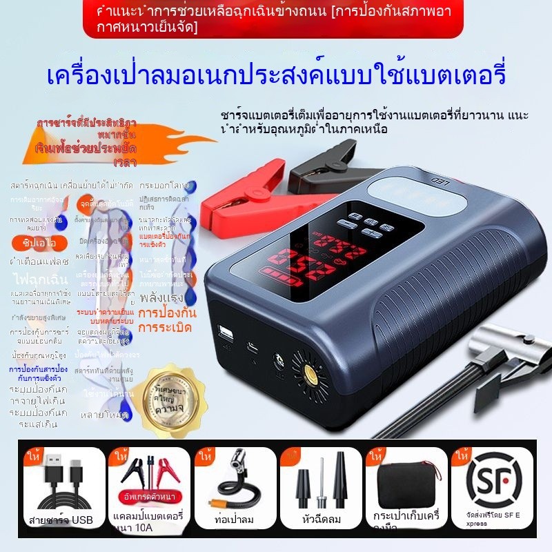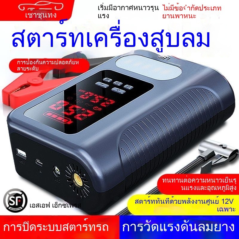 เครื่องสตาร์ทรถพกพา แบบ2ใน1 ปั๊มลม+สตาร์ท กำลังสูง สำหรับรถยนต์ 002