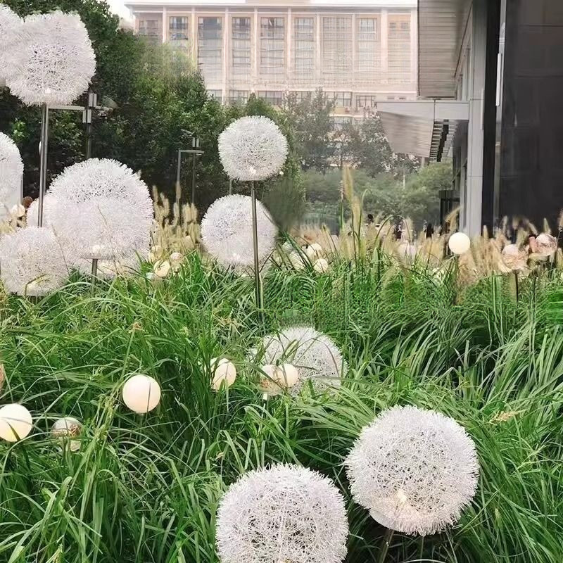 🔥LEDโคมไฟลวดอลูมิเนียมรูปดอกแดนดิไลออน โคมไฟพื้นดินกันน้ำส่องสว่างจากพลังงานแสงอาทิตย์ โครงการแสงสว่างกลางแจ้งโคมไฟสนาม