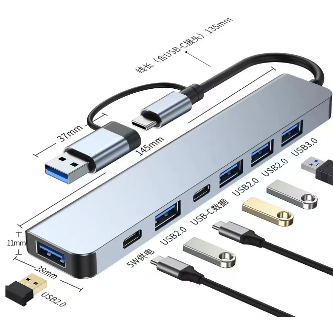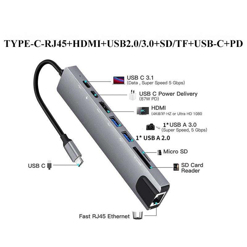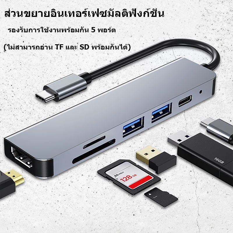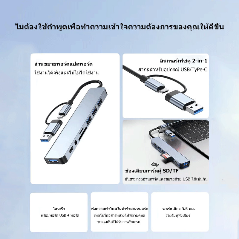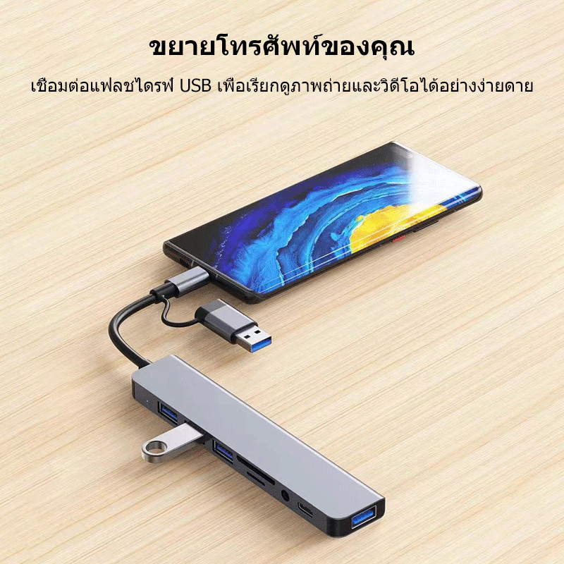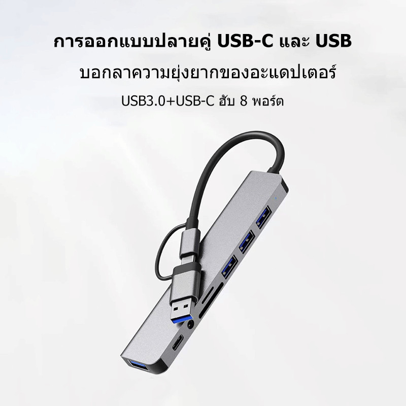 [ส่งไวจากไทย] 8 in 1 อะแดปเตอร์ฮับ USB+Type C HUB USB C เป็น USB 3.0 การ์ดรีดเดอร์ SD TF pd HUB 3.5 มม. สำหรับโทรศัพท์ม