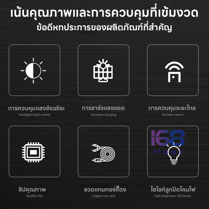 168HOME💡ไฟโซลาร์เซลล์🌞 ไฟสวน อัตโนมัติ ไฟกลางแจ้ง ประหยัดไฟ ไม่ใช้ไฟบ้าน ประหยัดค่าไฟ 100% ตั้งได้ทุกที่ แข็งแรง ทนฝน✅
