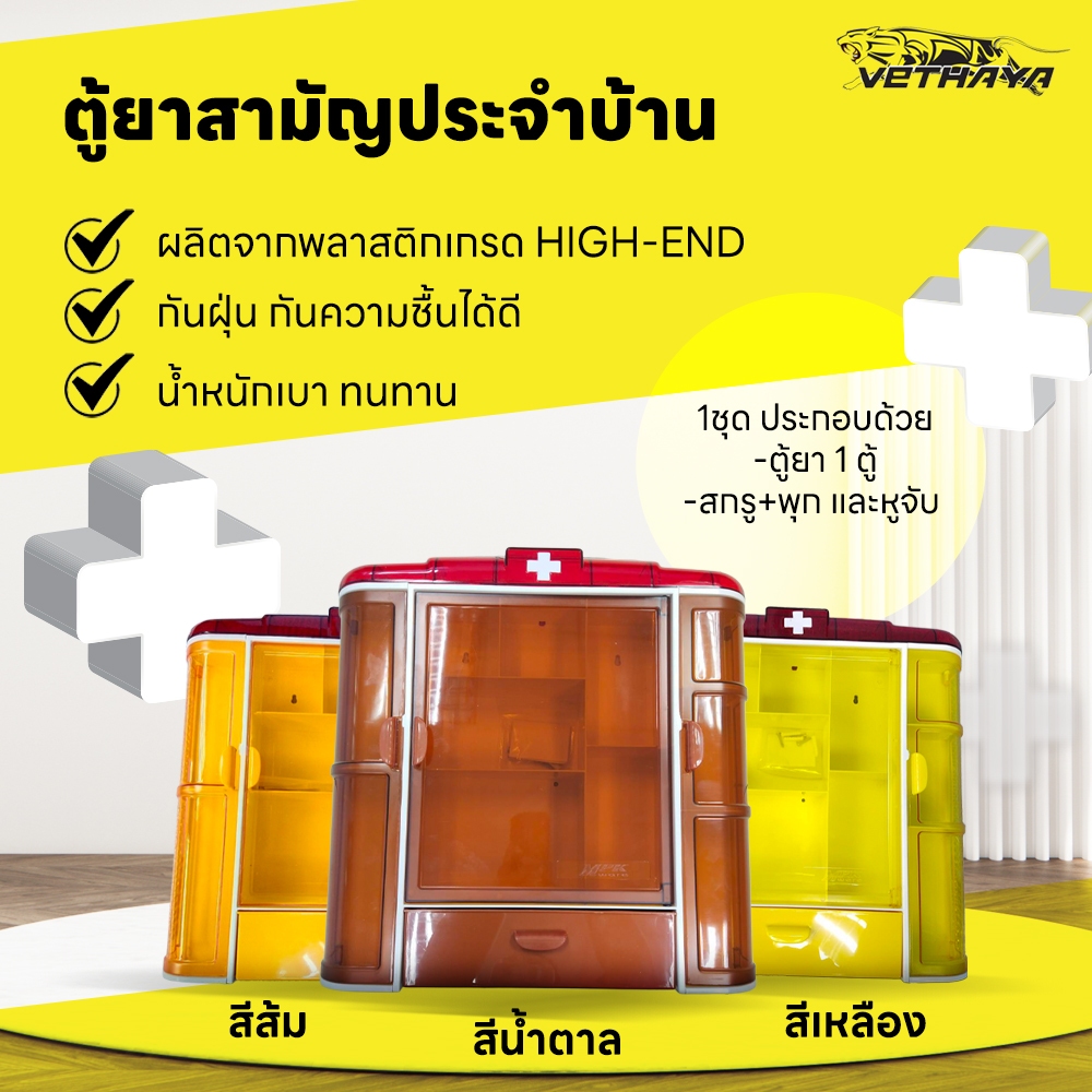 ตู้ยาสามัญประจำบ้าน ตู้ยาพลาสติก สีน้ำตาล