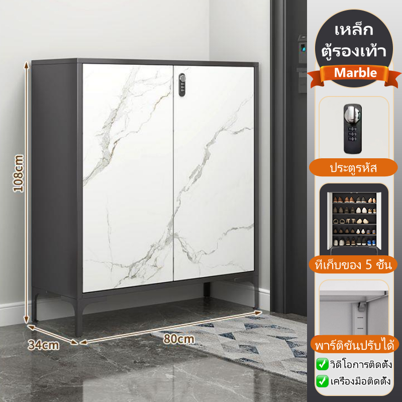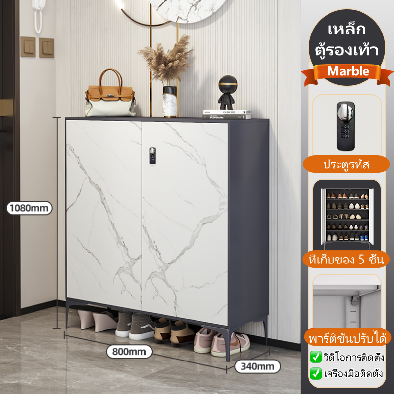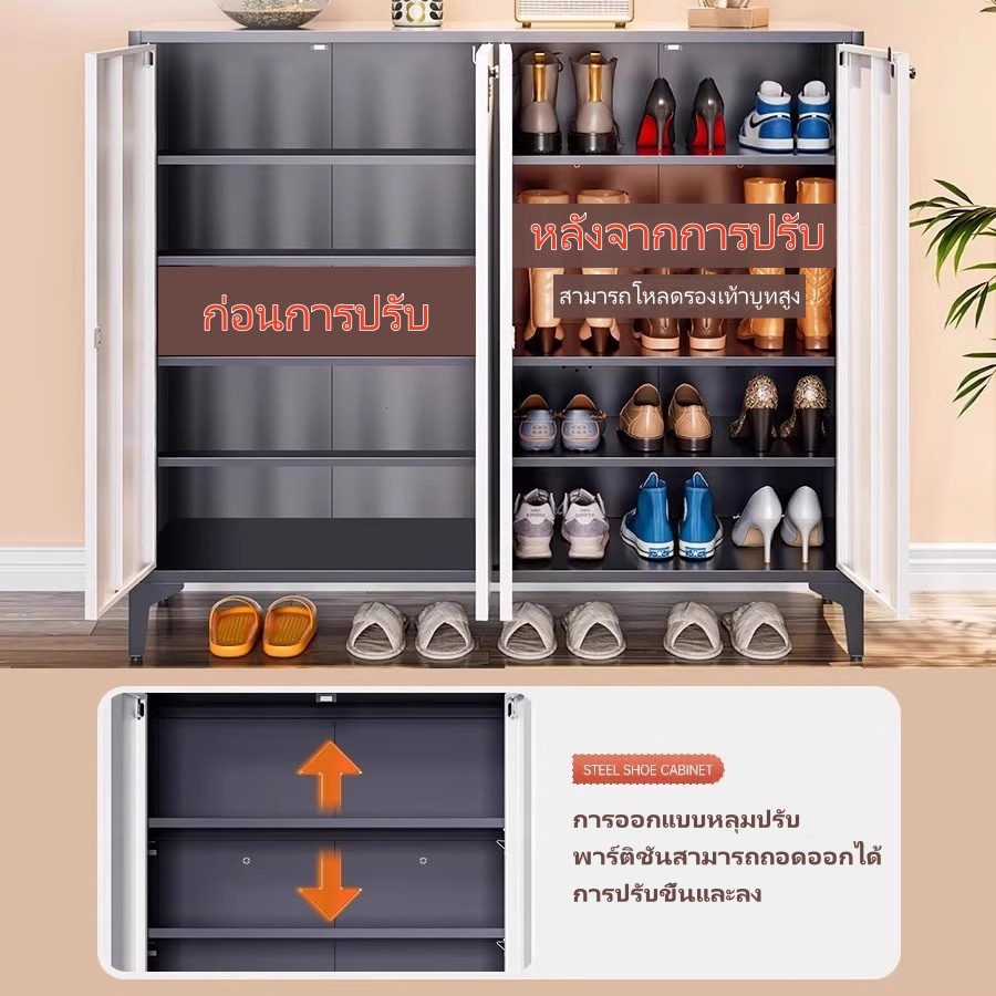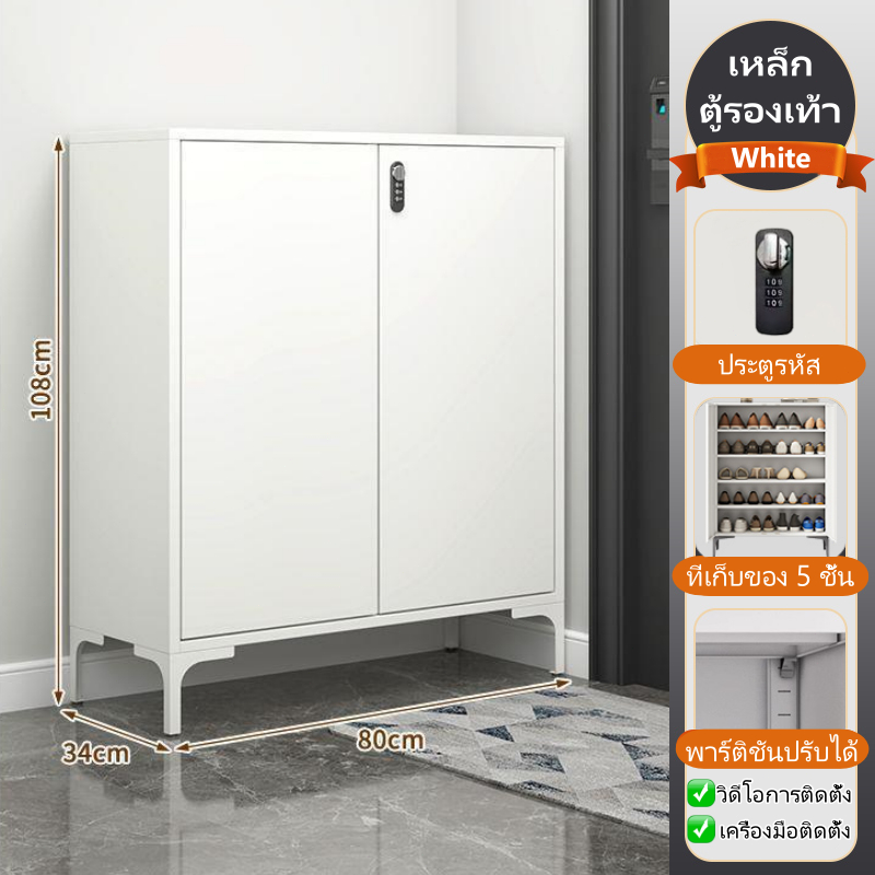 ⚡ จัดส่งถึงบ้านฟรี ⚡ ตู้รองเท้าเหล็ก 5 ชั้นความจุ 20 คู่รองเท้าพร้อมที่จับประตู / รหัสล็อคประตู