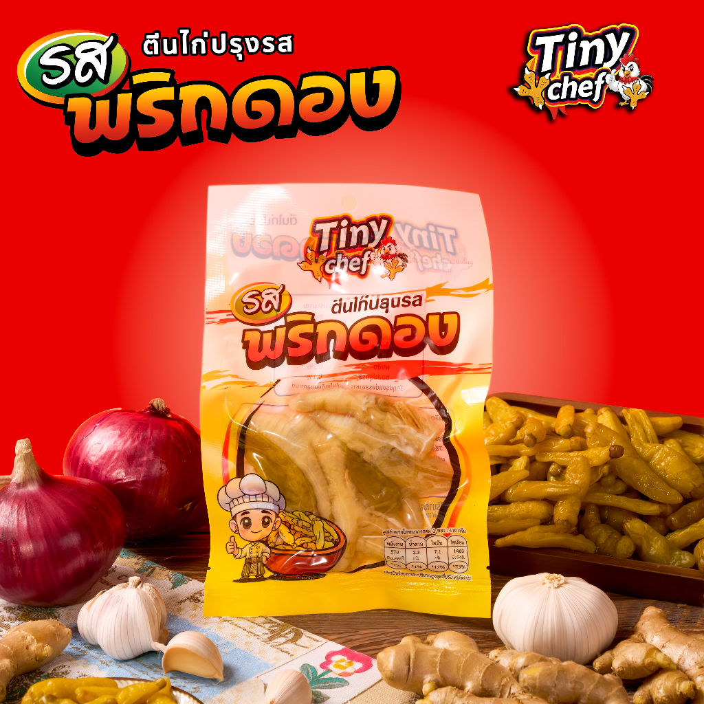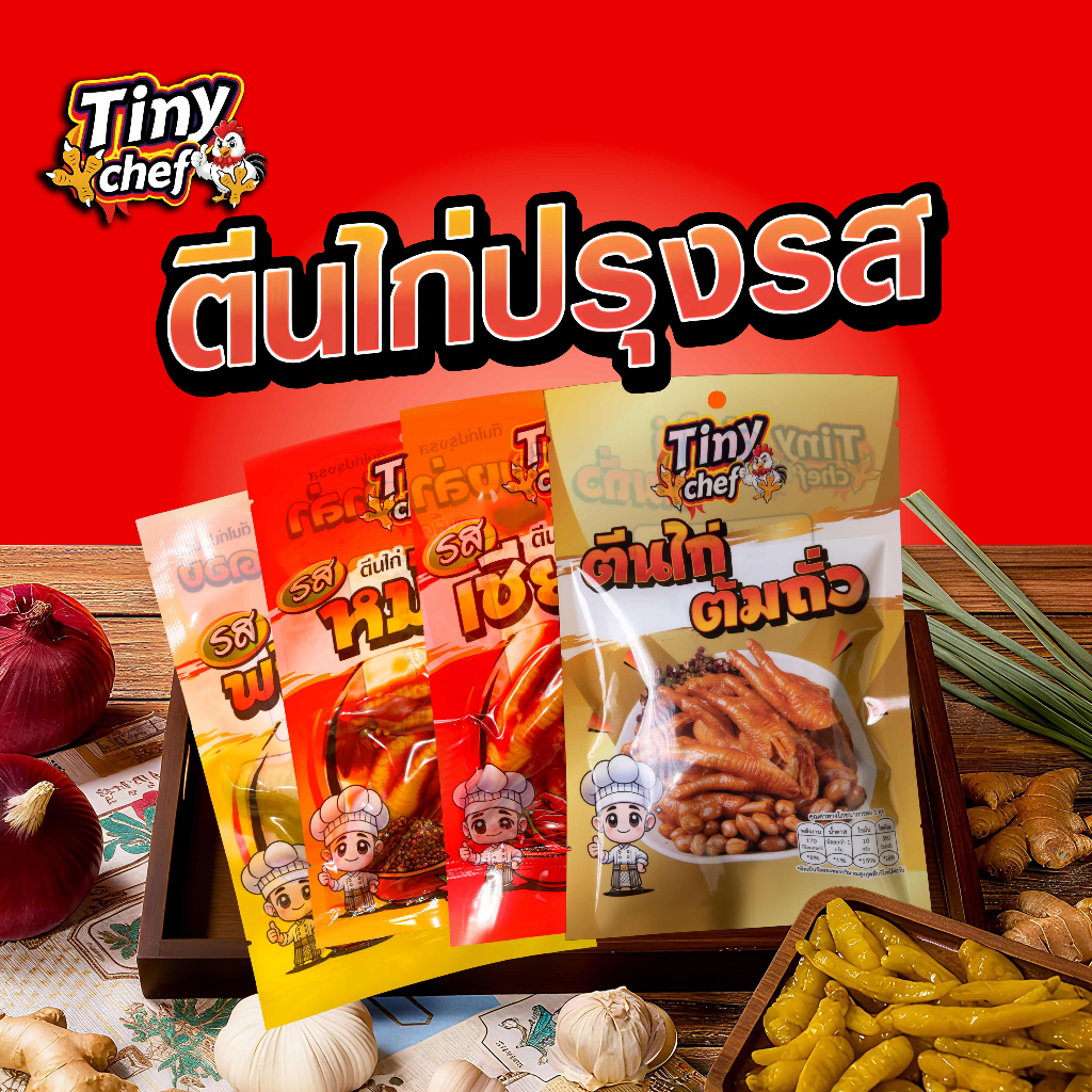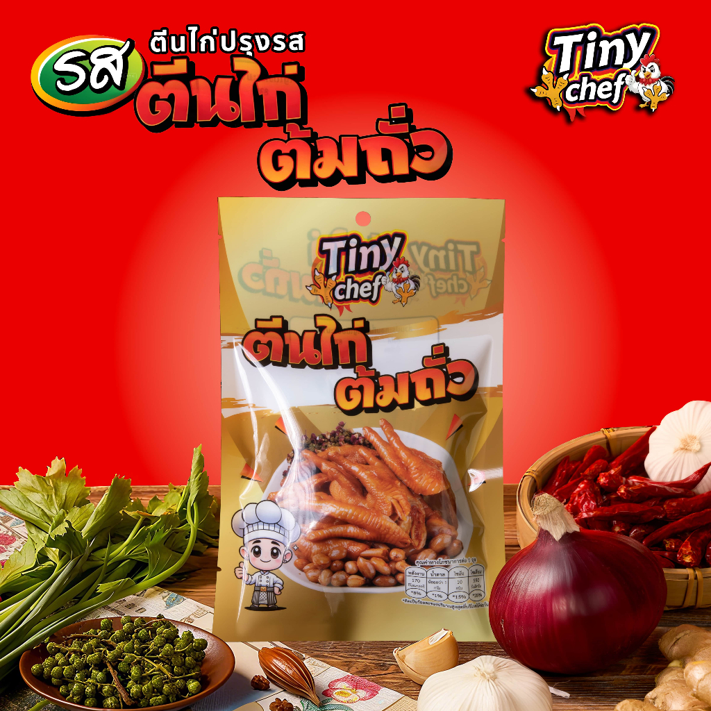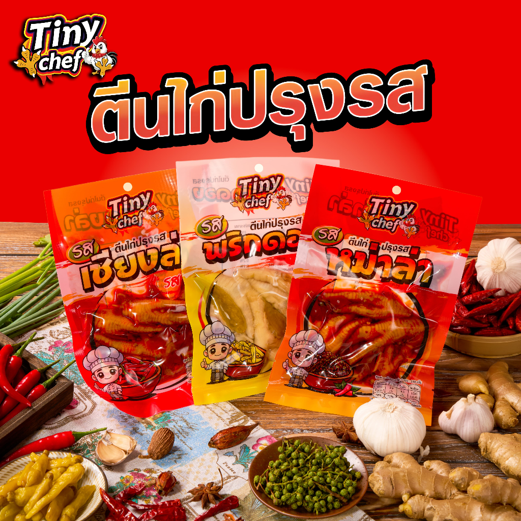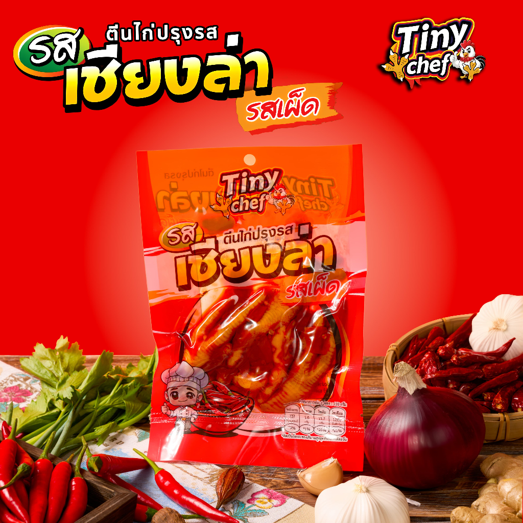 Tiny Chef ตีนไก่รสหม่าล่า ผลิตในประเทศไทย มี อย. รสชาติเผ็ดชาลิ้น รสสัมผัสนุ่มหนึบ ของทานเล่นขณะดูซีรี่ย์ แบบแซ่บๆ