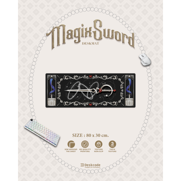 [ DESKCODE ] MagiXSword COLLECTION แผ่นรองเมาส์ แผ่นรองคีย์บอร์ด ขนาด 90x40 80x30 45x40 cm.หนา 3 mm.