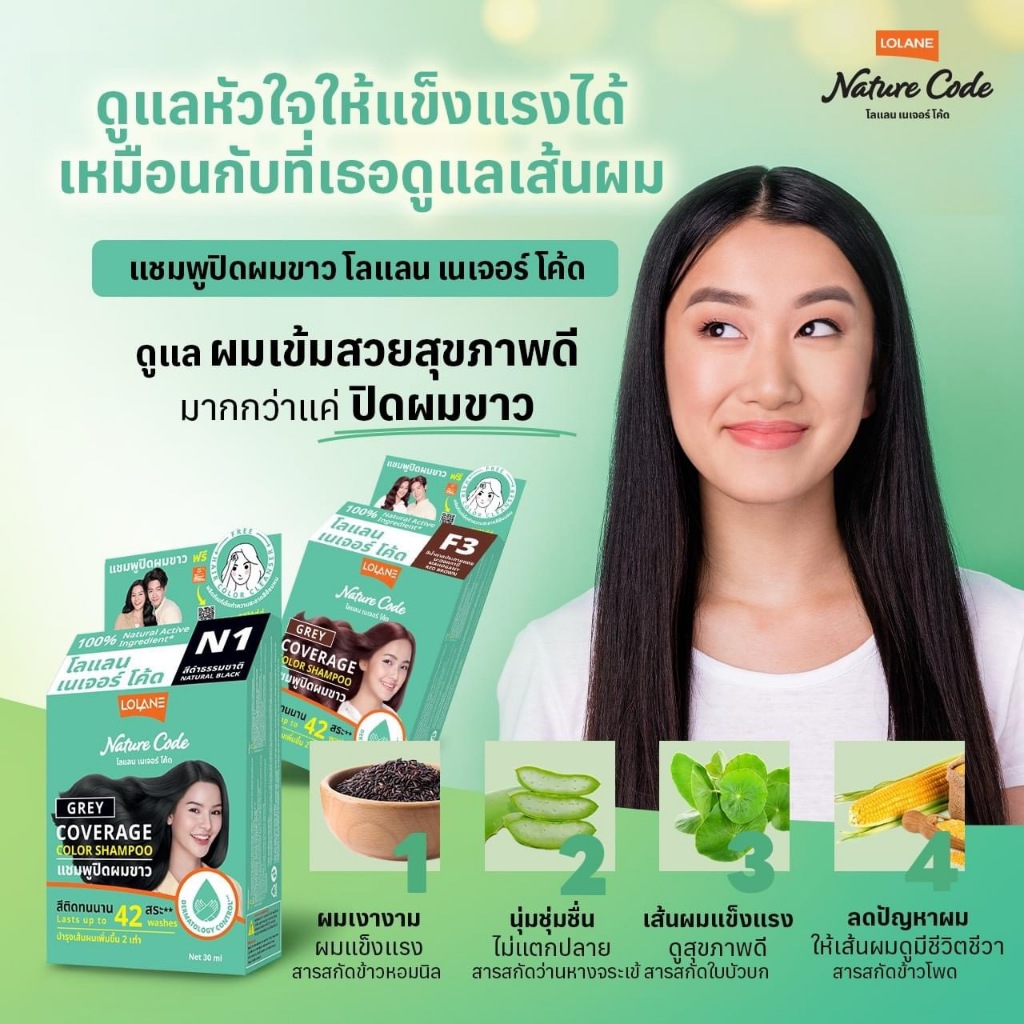 (3กล่อง)โลแลน เนเจอร์โค้ด แชมพูปิดผมขาว 30 มล.