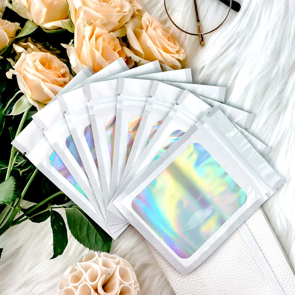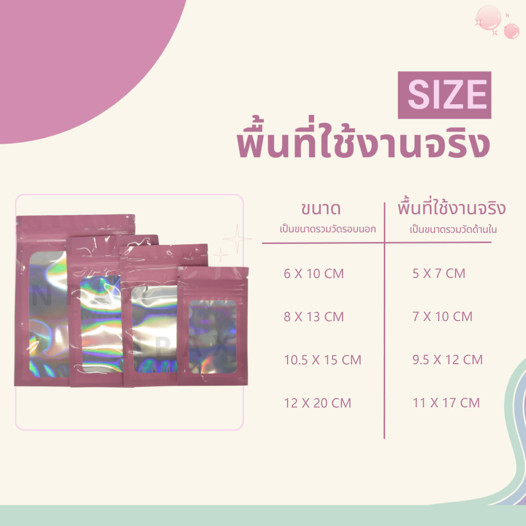 [แพ็คละ 50 แผ่น] ถุงซิปล็อค ถุงเก็บของ ถุงซิปล็อคสีเลเซอร์ ถุงซิปล็อคโฮโลแกรม มีรูแขวน มีหลายขนาดให้เลือก