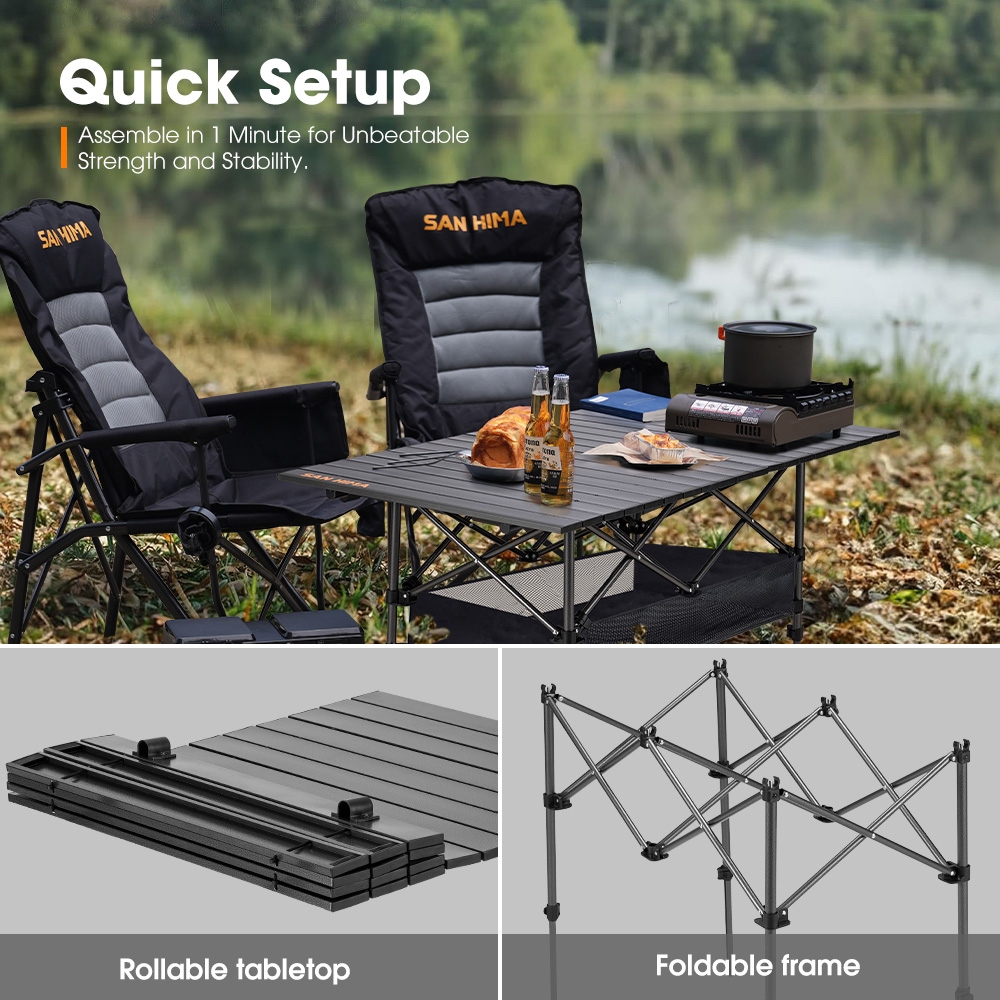 San Hima โต๊ะแคมป์พับได้ ปรับระดับได้ ทำจากอลูมิเนียม พกพาสะดวก สำหรับใช้งานกลางแจ้ง