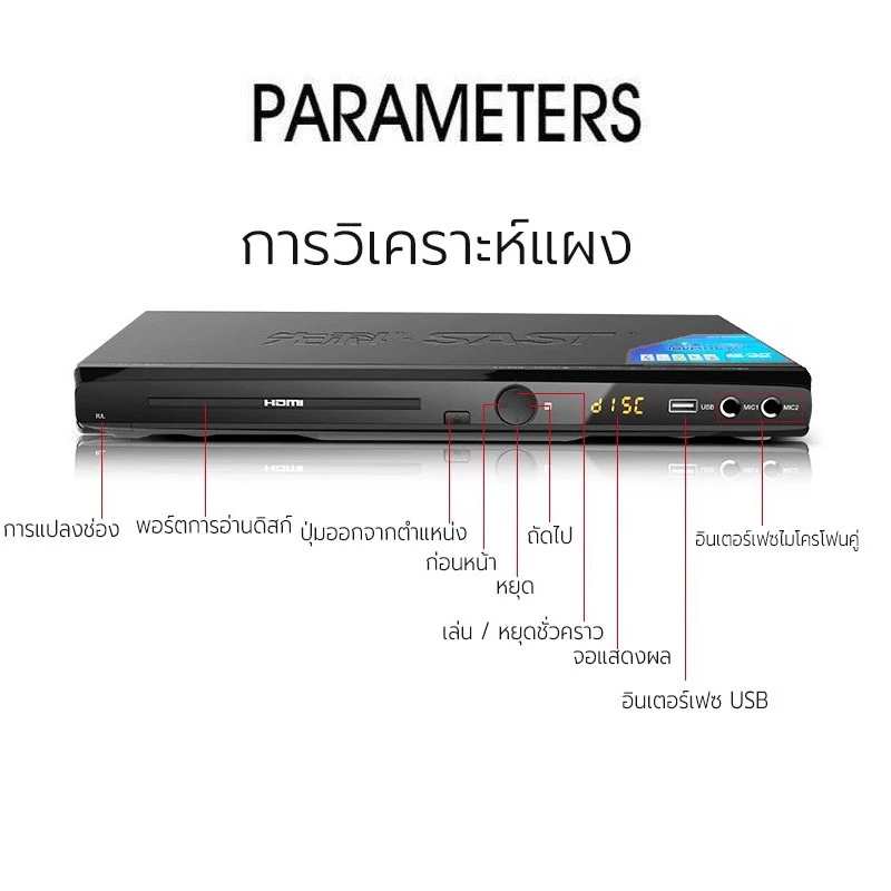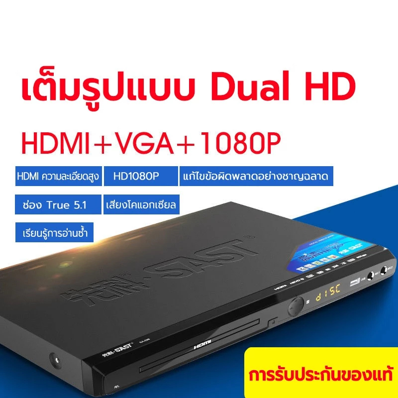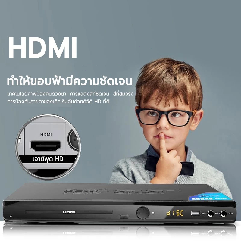 เครื่องเล่นแผ่นPlayer เครื่องเล่นวิดีโอ เสียงDolby สามารถเชื่อมต่อกับรีโมทคอนโทรล1080P HDเอาต์พุต 2.0สเตอริโอ บลูทูธ5.0