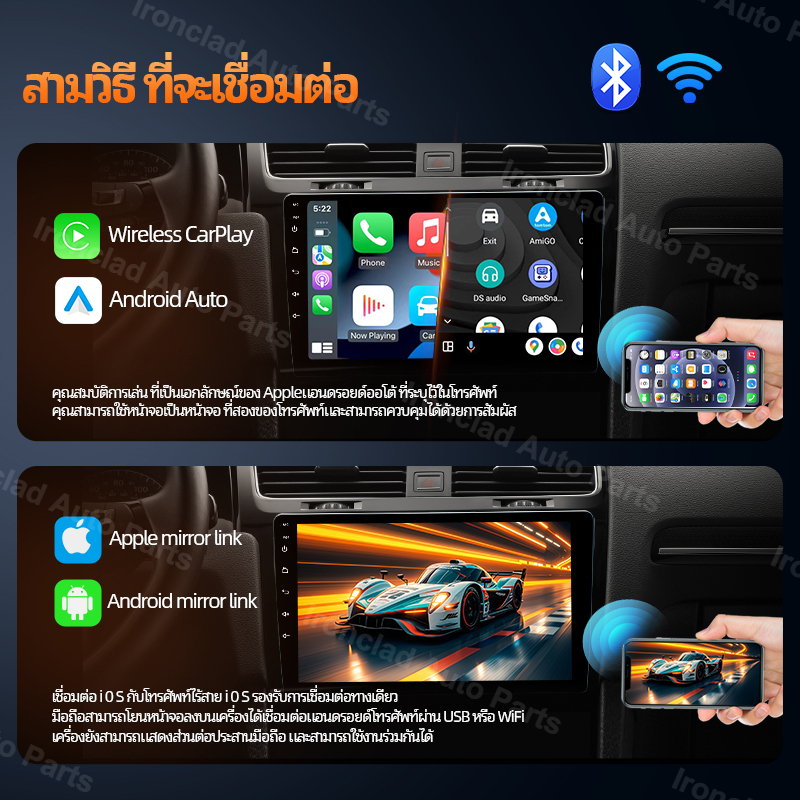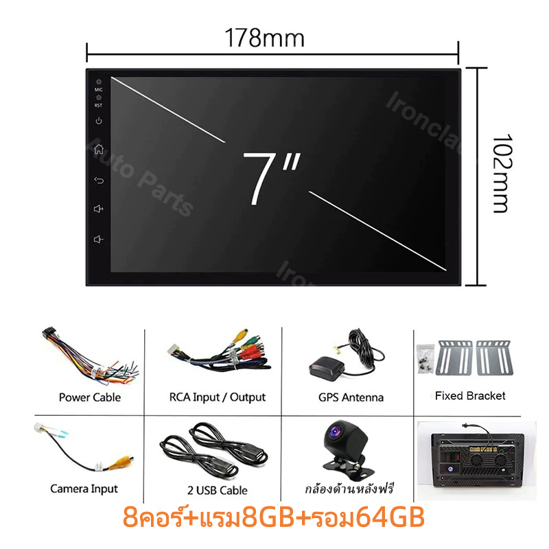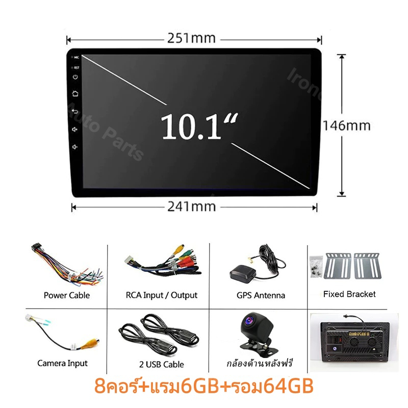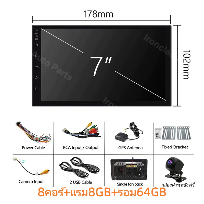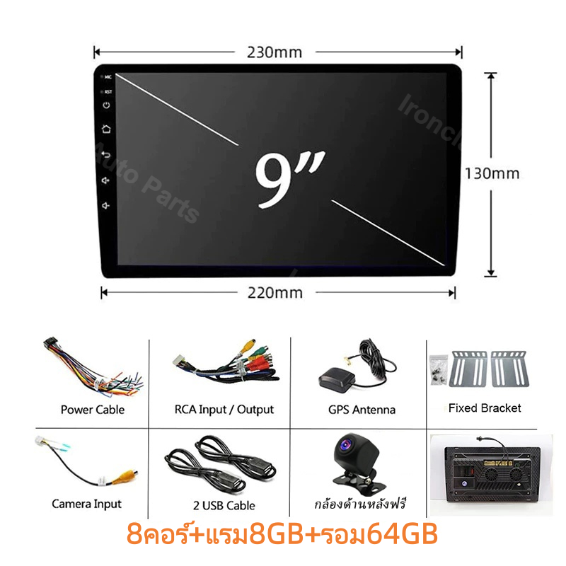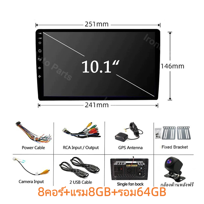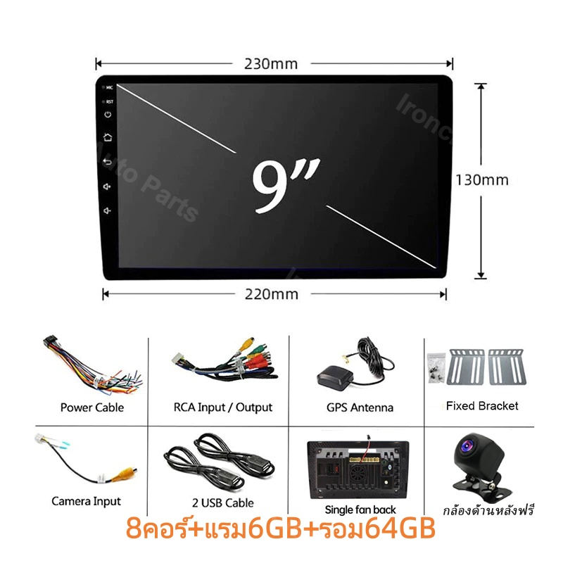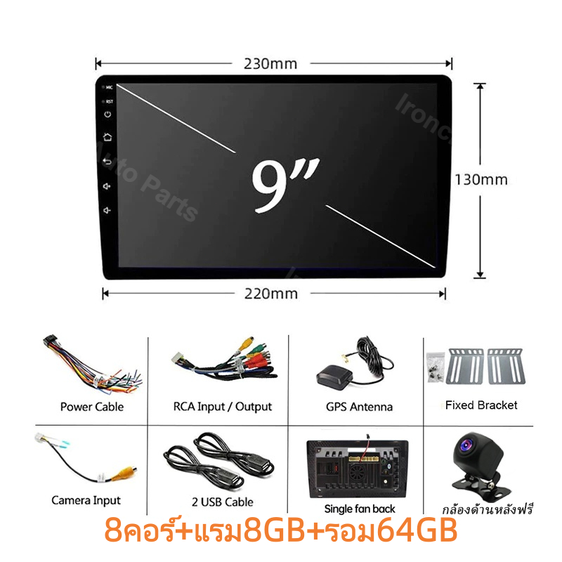 พัดลมคู่ 8Core+8+64GB จอ android ติดรถยนต์ กล้องหลังฟรี CarPlay จอแอนดรอยด์ติดรถยนต์ Android Auto WiFi GPS 7/9/10นิ้ว