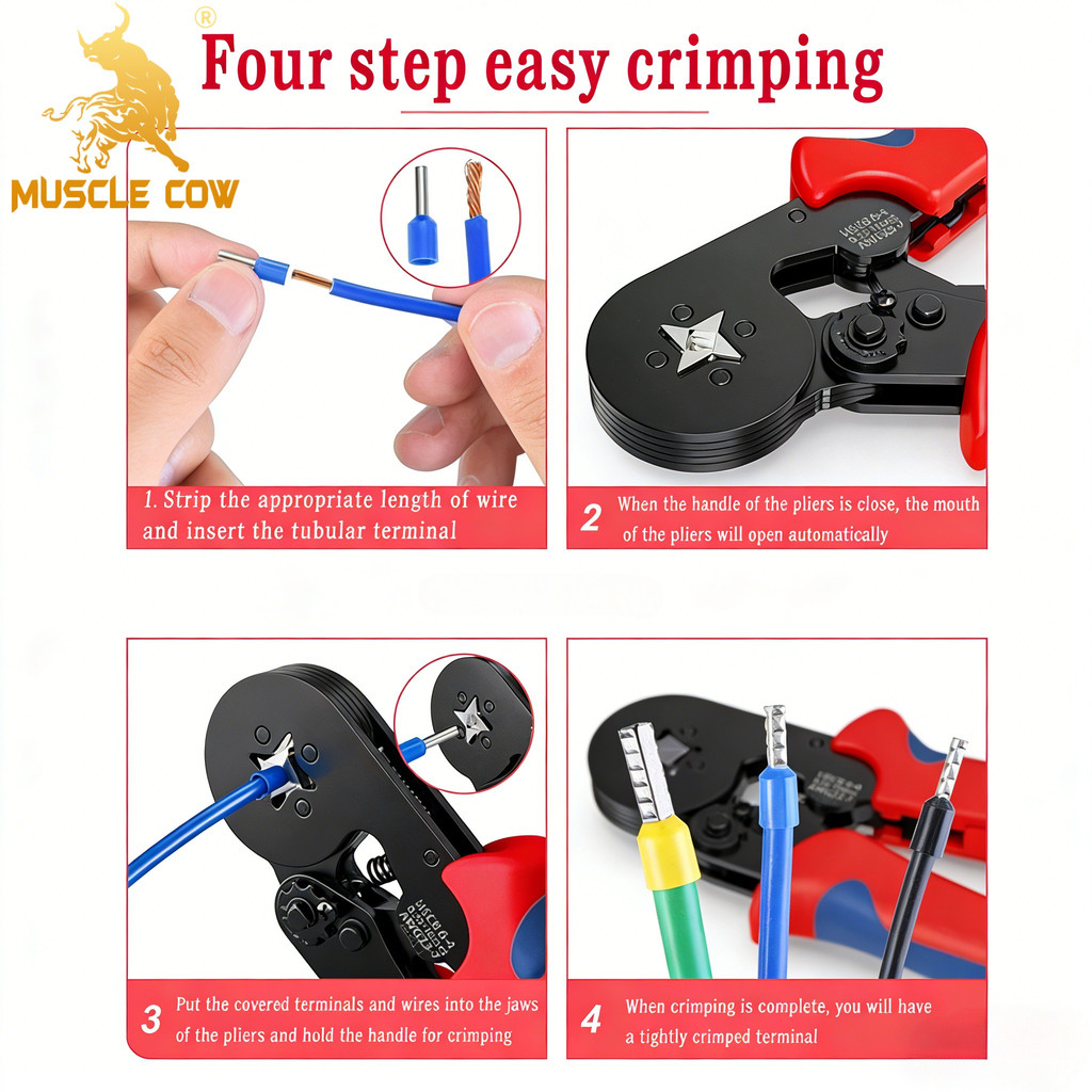 MUSCLE COW ชุดคีมย้ำหางปลากลม หางปลากลม คอร์ดเอ็น คีมย้ำหางปลา คีมย้ำคอร์ดเอ็นคีมจีบ คีมย้ำคอร์ดเอ็น 1200 ชิ้น+คีมย้ำ