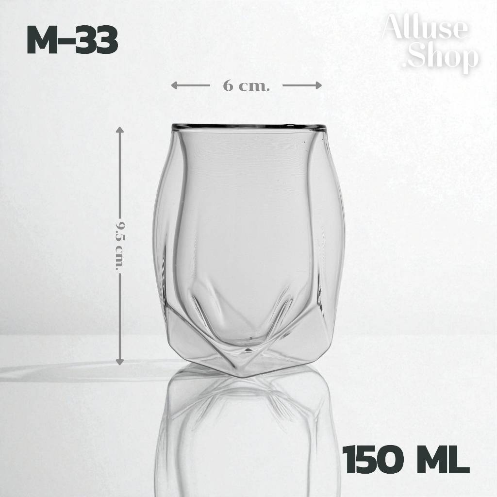 Alluse Shop แก้วสองชั้น รุ่นM33-150ml ทนร้อนเย็น วัสดุ High Borosilicate Glass ดีไซน์มินิมอล ทนทานต่อการขีดข่วน พร้อมส่ง