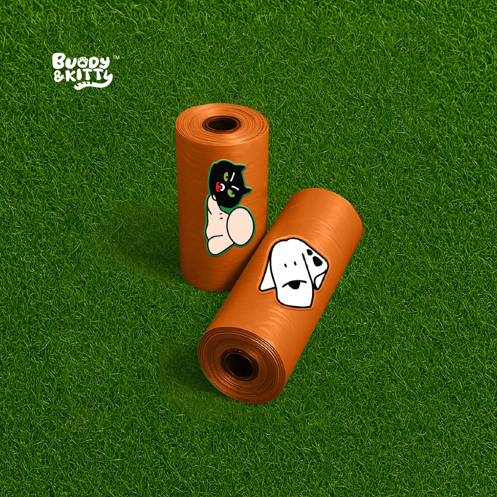 Buddy and Kitty ถุงเก็บมูลสัตว์เลี้ยง ถุงเก็บอึสุนัขแมว ของใช้สัตว์เสี้ยง ถุงขยะพกพา ใช้งานสะดวก 1 ม้วน รวม 15 ถุง