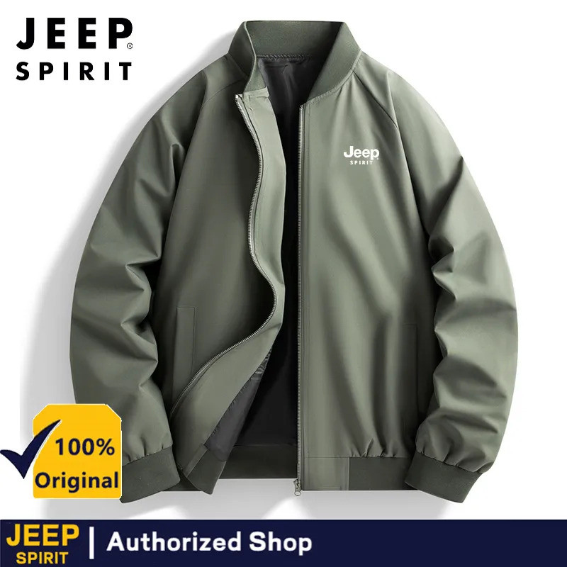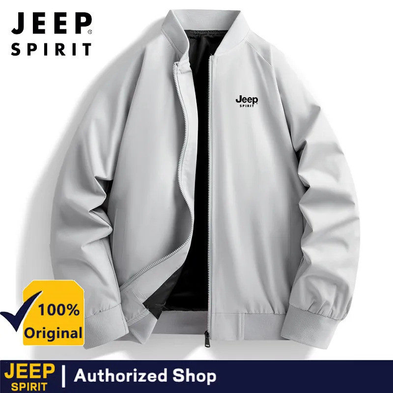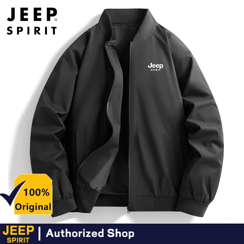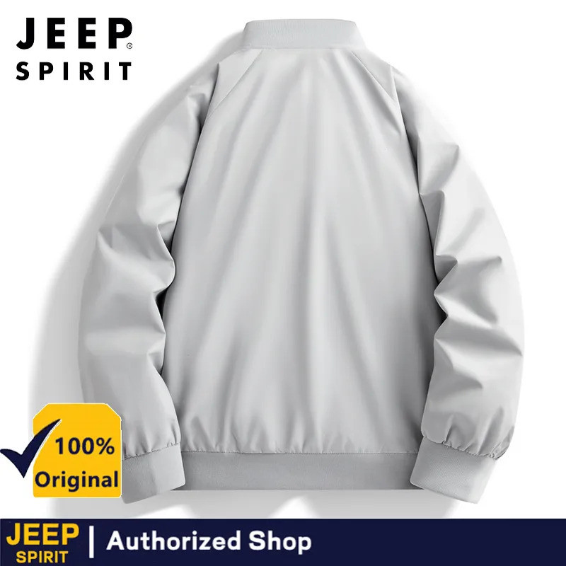 JEEP SPIRIT เสื้อแจ็คเก็ตน้ำหนักเบาที่เหมาะสำหรับผู้ชาย กันลม ซิป ฤดูใบไม้ผลิและฤดูใบไม้ร่วง ลำลอง