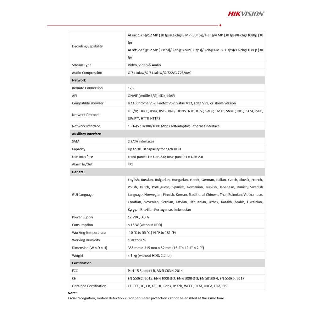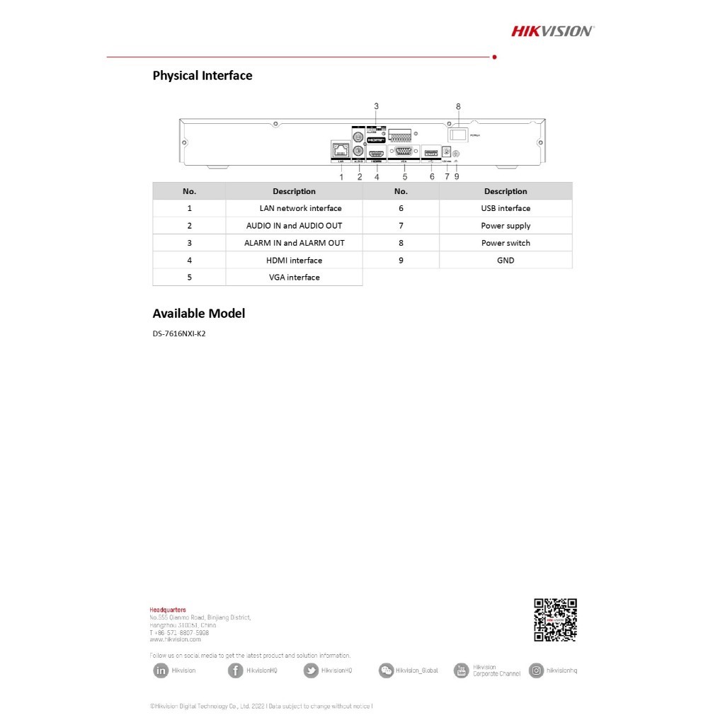HIKVISION เครื่องบันทึกกล้องวงจรปิด 16CH 1U K Series AcuSense 4K NVR รุ่น DS-7616NXI-K2(D)