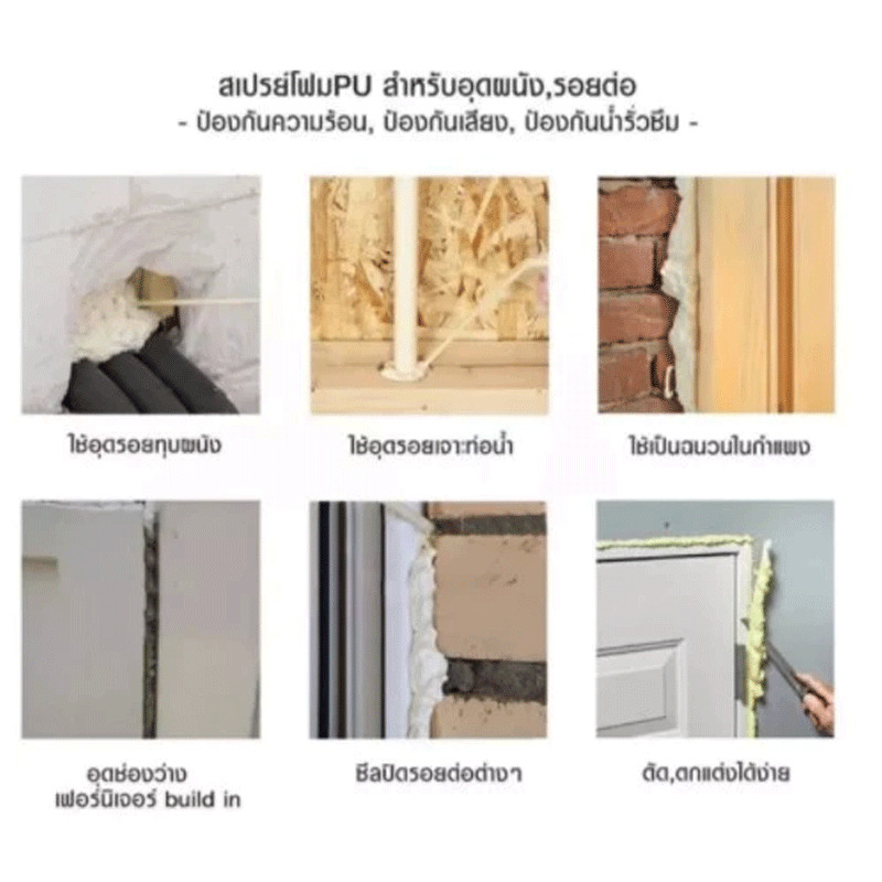 โฟมอุดรอยรั่ว PUFoam โฟมสเปรย์ ความปลอดภัย ใช้งานได้จริง การยึดเกาะที่ดี ป้องกันเสียง อายุการใช้งานยาวนาน