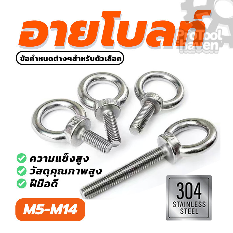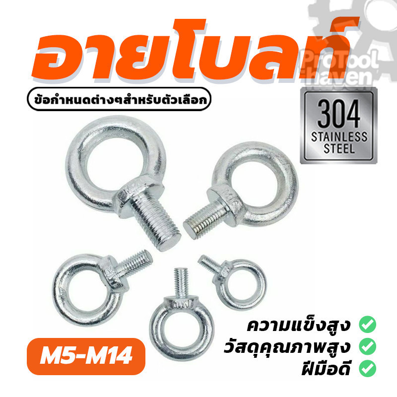 EYE BOLT อุปกรณ์ห่วงสกรู อายโบลท์ คุณภาพสูง มี 6 ตัวเลือก M5/M6/M8/M10/M12/M14