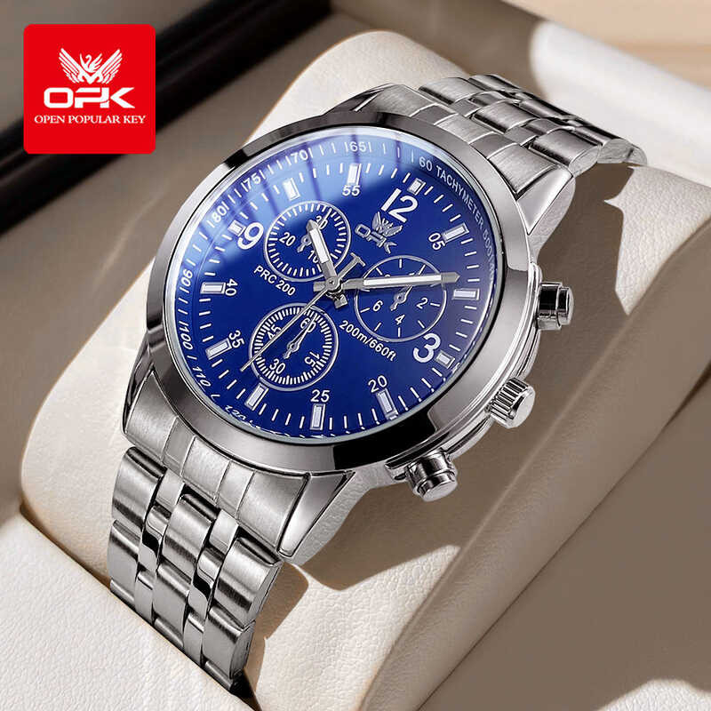 ❤ OPK ใหม่ 100% นาฬิกา ผู้ชาย แท้ กันน้ำ ส่องสว่าง สายสแตนเลส นาฬิกาควอทซ์ พร้อมกล่อง