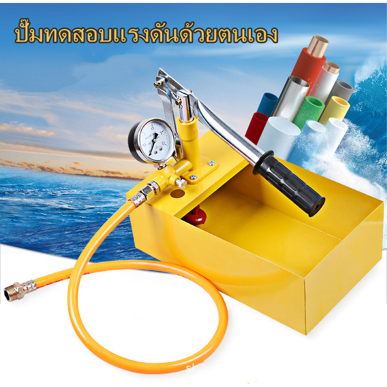 เครื่องทดสอบรอยรั่วท่อน้ำ แรงดันสูง พร้อมปั๊มในตัว ตรวจหาจุดรั่วได้แม่นยำ เครื่องวัดแรงดันน้ำสีเหลือง ใช้งานง่าย