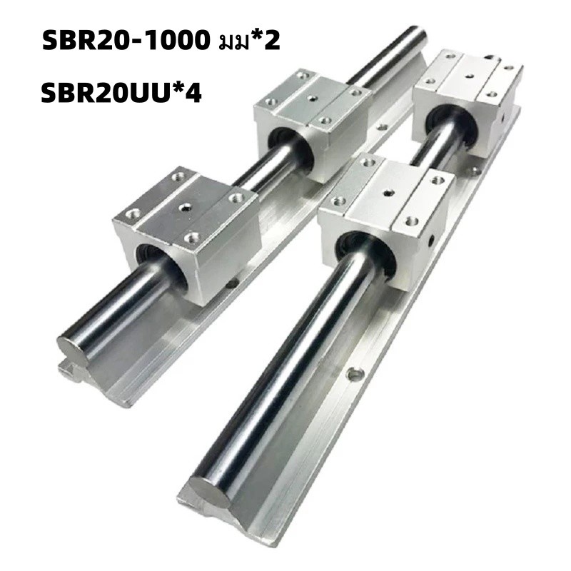 ชุดรางสไลด์เชิงเส้น SBR20 พร้อมบล็อกแบริ่ง 4 ตัว และเพลายาว 1000 มม. (รุ่น SBR20UU + SBR20-1000)