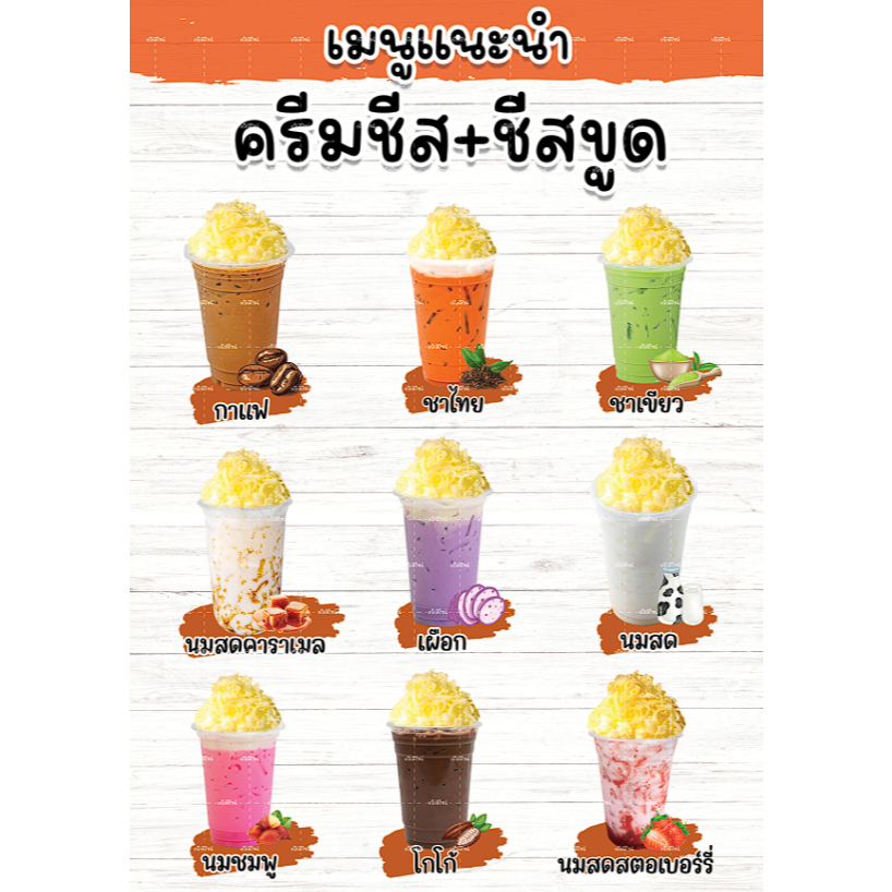 ป้ายชาไทย ป้ายเมนูชีสขูด ป้ายชีสขูด ป้ายชากาแฟ ป้ายน้ำปั่น ป้ายตกแต่งร้านกาแฟ