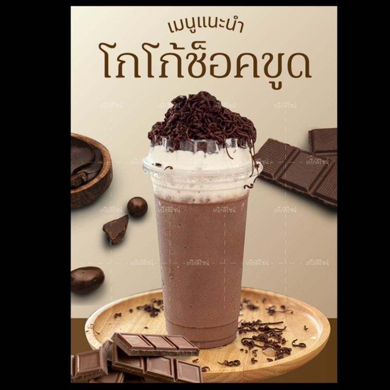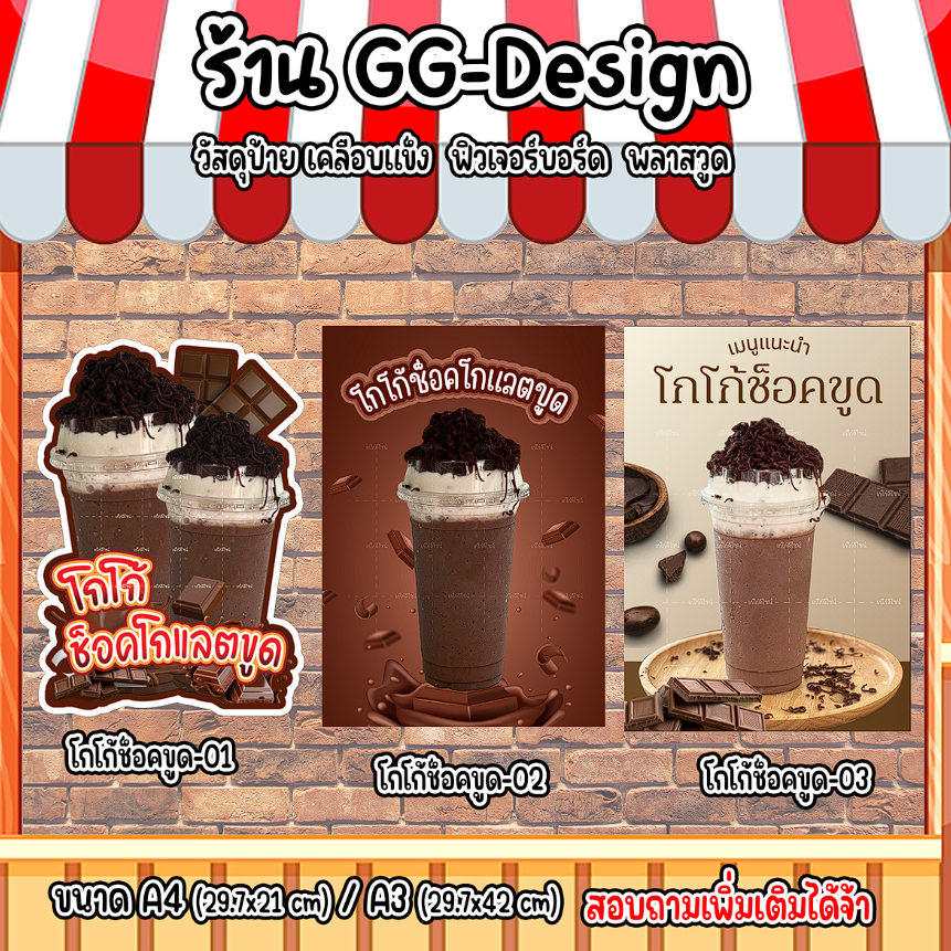 ป้ายโกโก้ช็อคโกแลตขูด ป้ายโกโก้ช็อคขูด ป้ายช็อคขูด ป้ายเมนูแนะนำ ป้ายสติกเกอร์รีดฟิวเจอร์บอร์ด ป้ายเคลือบใส/เคลือบแข็ง