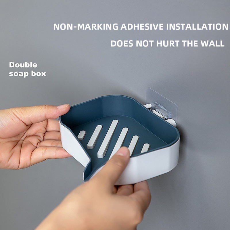 [ Featured ] ถาดวางสบู่ฟองน้ํา แบบสองชั้น ระบายน้ําได้ สําหรับติดผนังห้องน้ํา