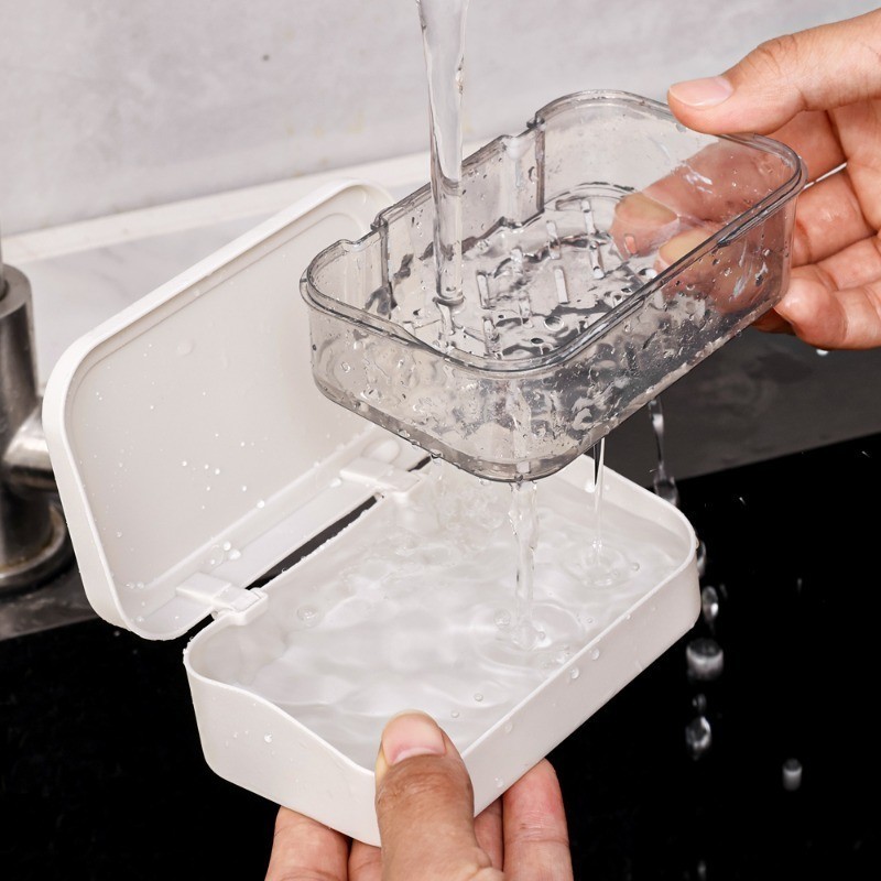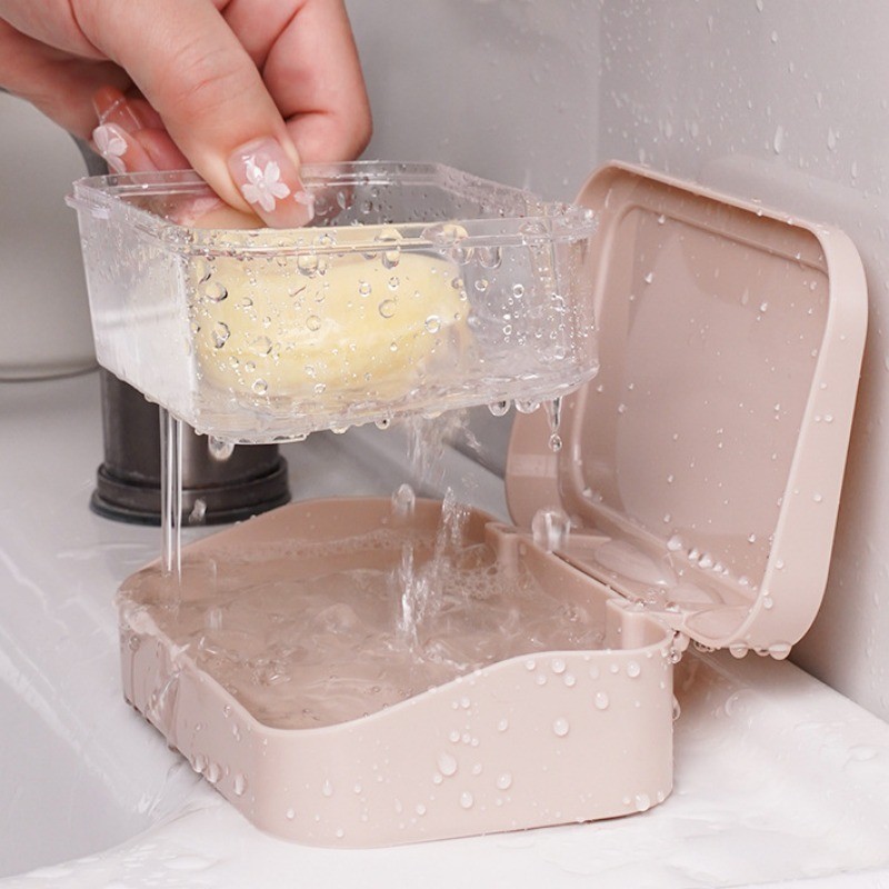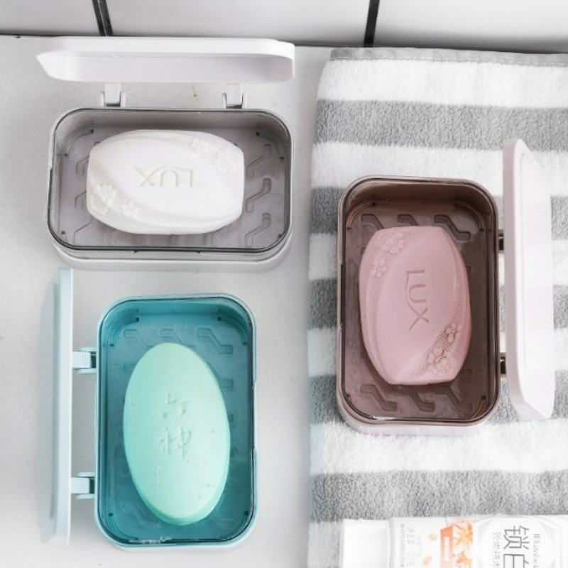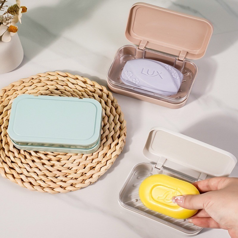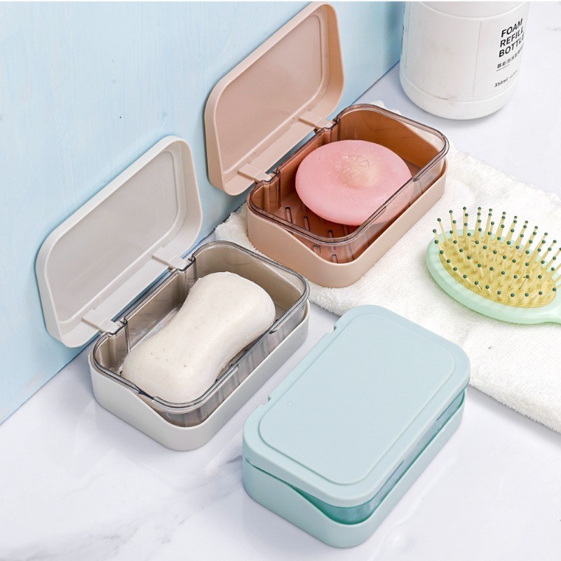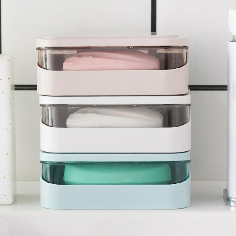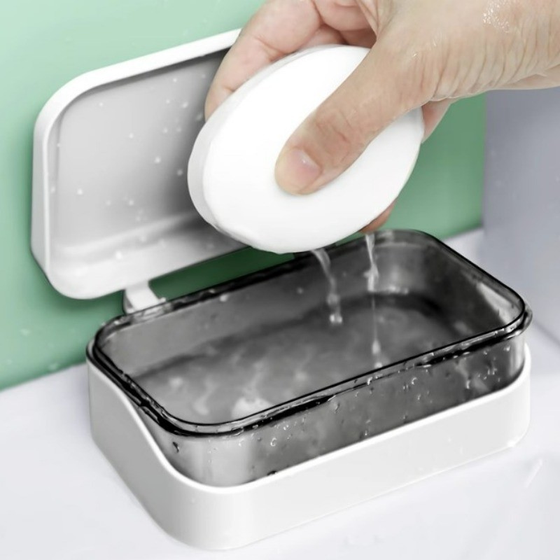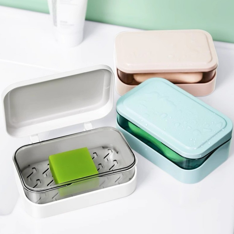 [ ที่โดดเด่น ] กล่องสบู่พร้อมฝาปิด - ป้องกันการหล่น แบบพกพา ต่อต้าน-แบคทีเรีย - อุปกรณ์จัดเก็บในห้องน้ํา - ที่ใส่ฟองน้ําในครัว - ถาดระบายน้ําสบู่น้ําหอม - การอบแห้ง ชั