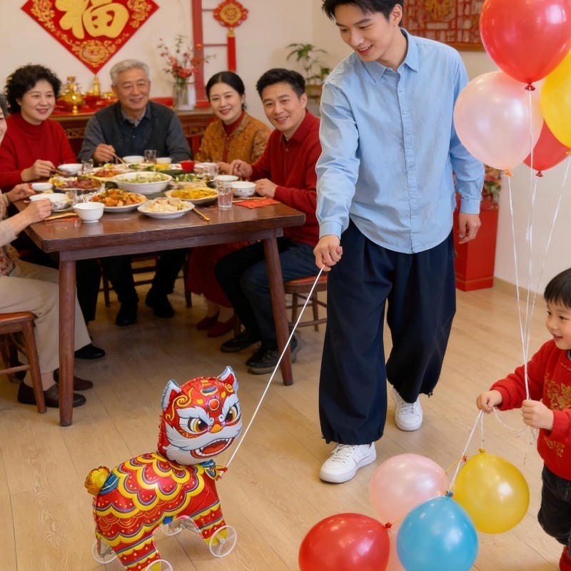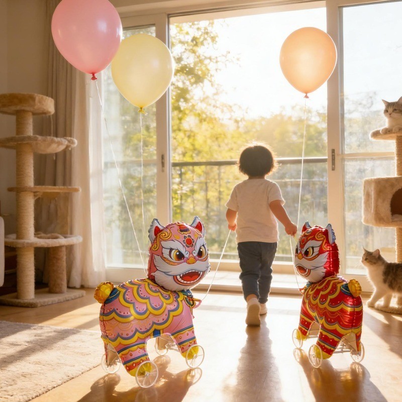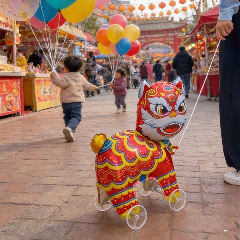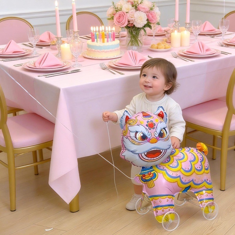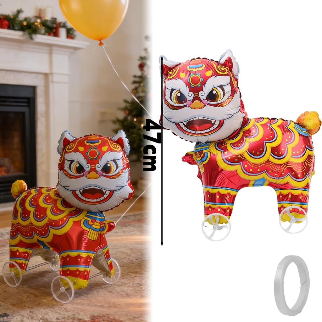 [HGB]บอลลูนเดิน Lion Dance 5 ชิ้นสําหรับงานปาร์ตี้ปีใหม่จันทรคติ | ธีม 2026 มีล้อ | เด็กของขวัญตกแต่งวันเกิด | ลูกโป่งฟอยล์สีชมพูแดง