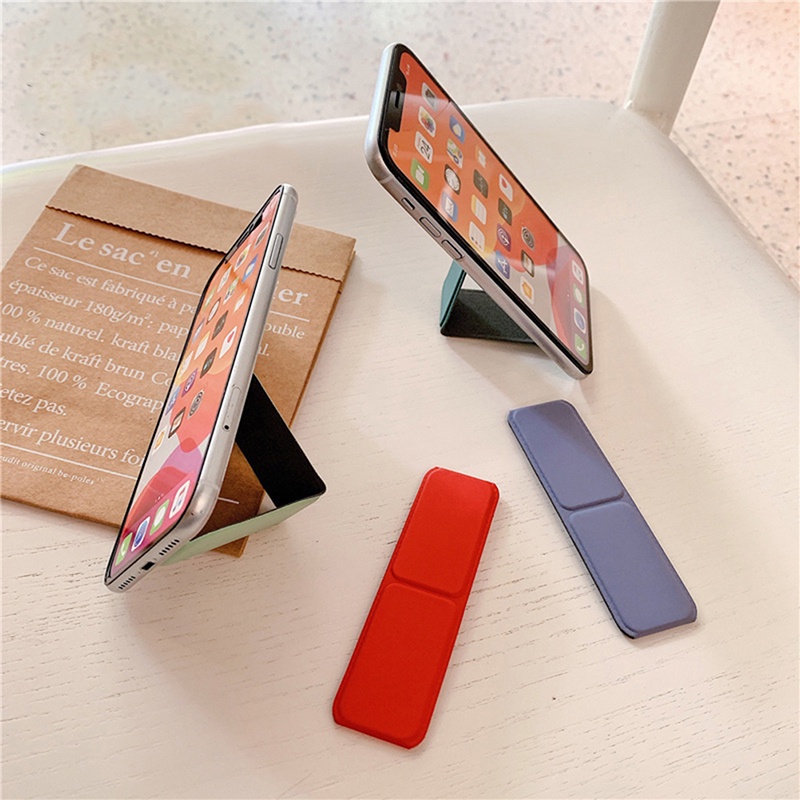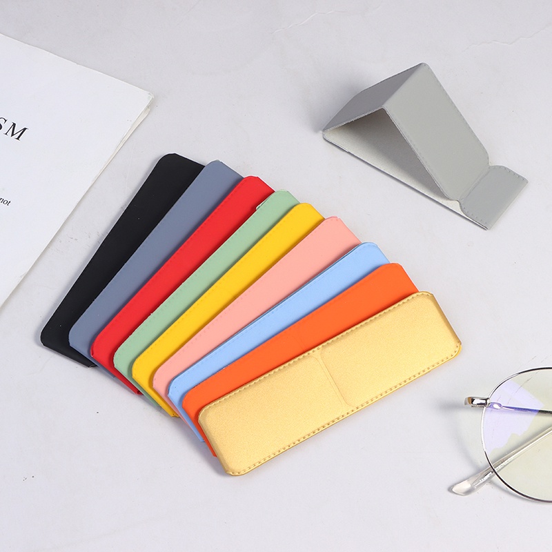 ที่วางโทรศัพท์มือถือแท็บเล็ต หนัง PU แบบพับได้ อเนกประสงค์ แบบพกพา มีกาวในตัว หลากสีสัน