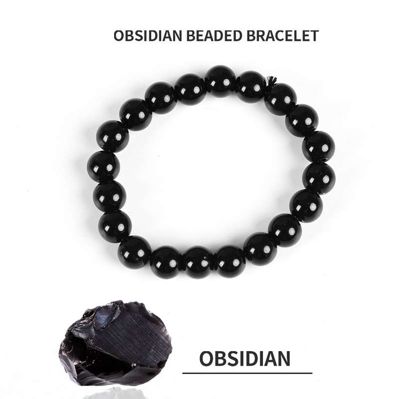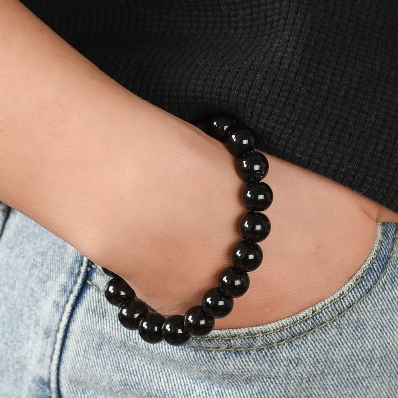 (Eternal) 6/8/10/12/14 มม. สีดํา สร้อยข้อมือออบซิเดียน / กระชับสัดส่วน โยคะ พลังงาน หิน ลูกปัด กําไล / ผู้ชาย ผู้หญิง ยืดหยุ่น สร้อยข้อมือ เครื่องประดับ อุปกรณ์เสริม