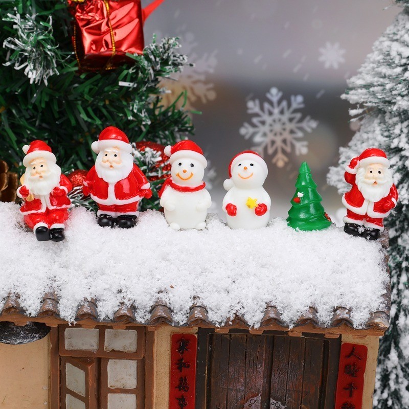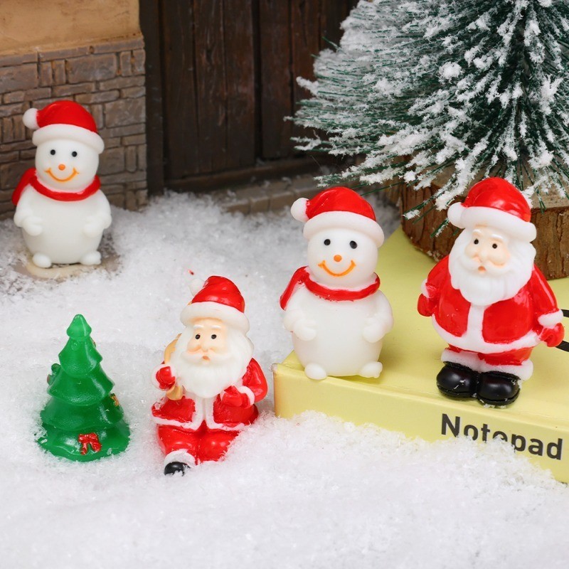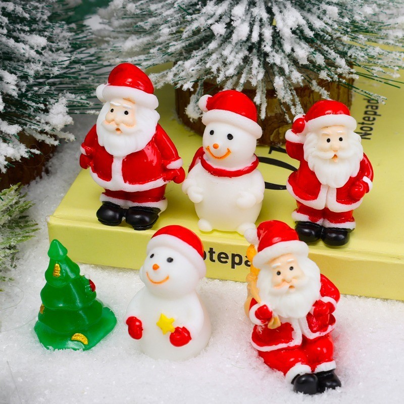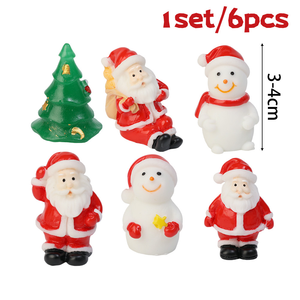 [3-5 วันมาถึง] 6ชิ้นซานตาคลอสตุ๊กตาสโนว์แมนเครื่องประดับ-สุขสันต์วันคริสต์มาสตุ๊กตารูปปั้น-การ์ตูนมินิไมโครภูมิทัศน์-ทําเองสก์ท็อปตกแต่งผลิตภัณฑ์-มินิเรซินงานฝีมื