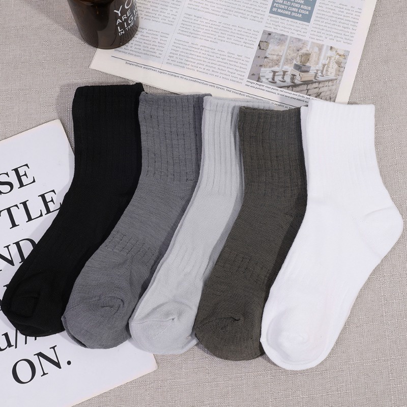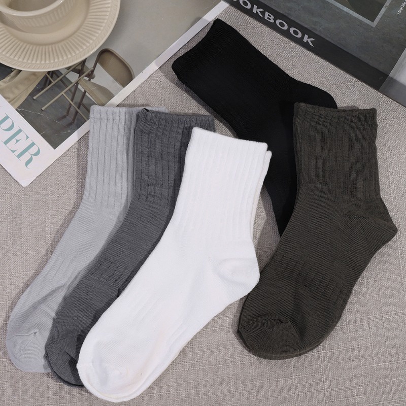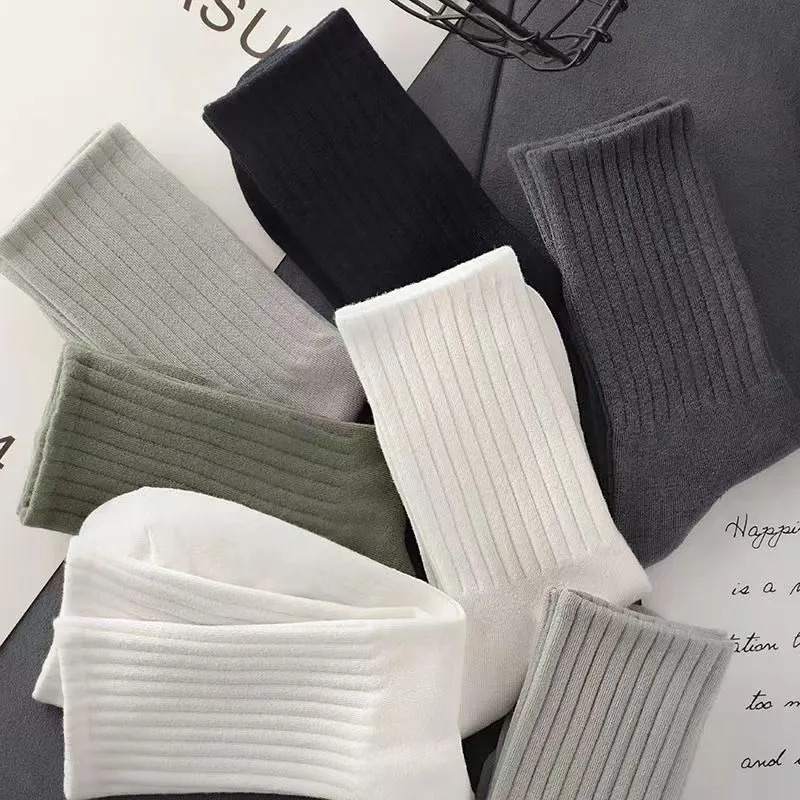 ถุงเท้ากีฬาลําลอง ผ้าฝ้าย กันลื่น ลายทาง สีดํา สีขาว สีเทา อเนกประสงค์ แฟชั่นฤดูใบไม้ร่วง และฤดูหนาว สําหรับผู้ชาย และนักเรียน