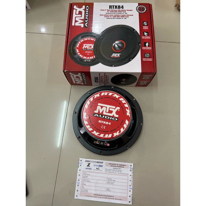 ดอกละ 1395บาท 8”เฟสปลั๊กกลางดังฟังเพราะ ยี่ห้อ MTX รุ่น RTX84