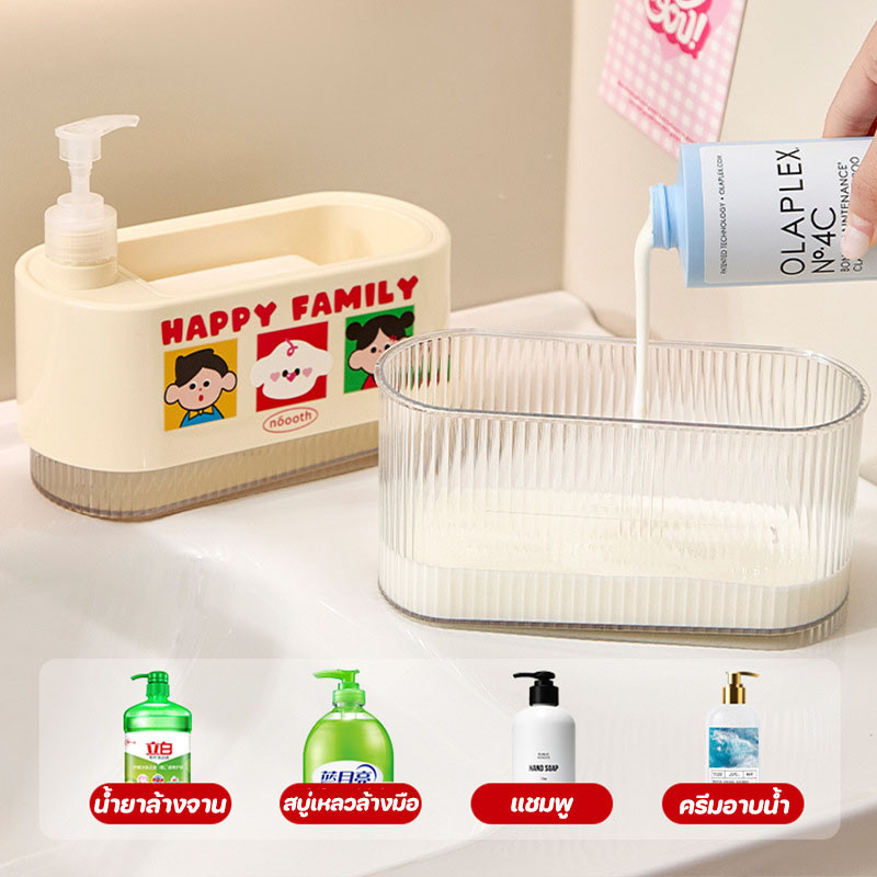 ตู้ทําสบู่มือ ขวดกด ขวดจ่ายน้ำยาล้างจาน ที่มีช่องเก็บของหนึ่งช่อง ป้องกันฝุ่นและชื้น ป้องกันรั่ว