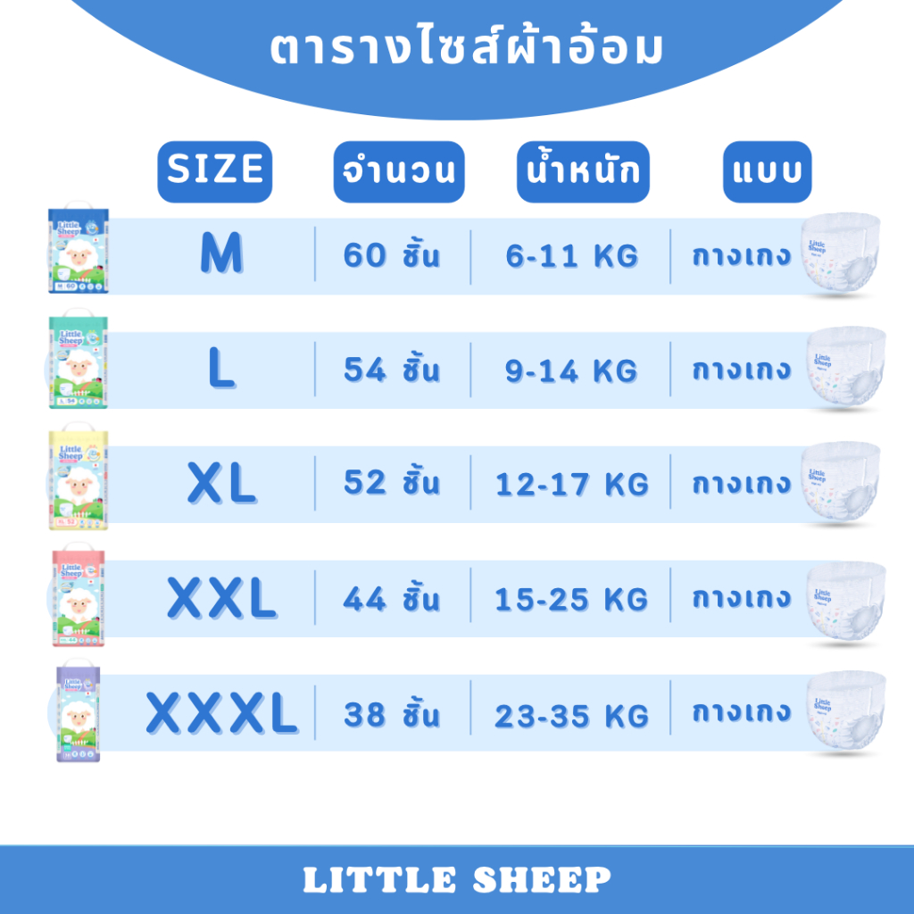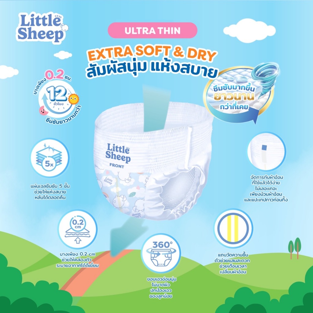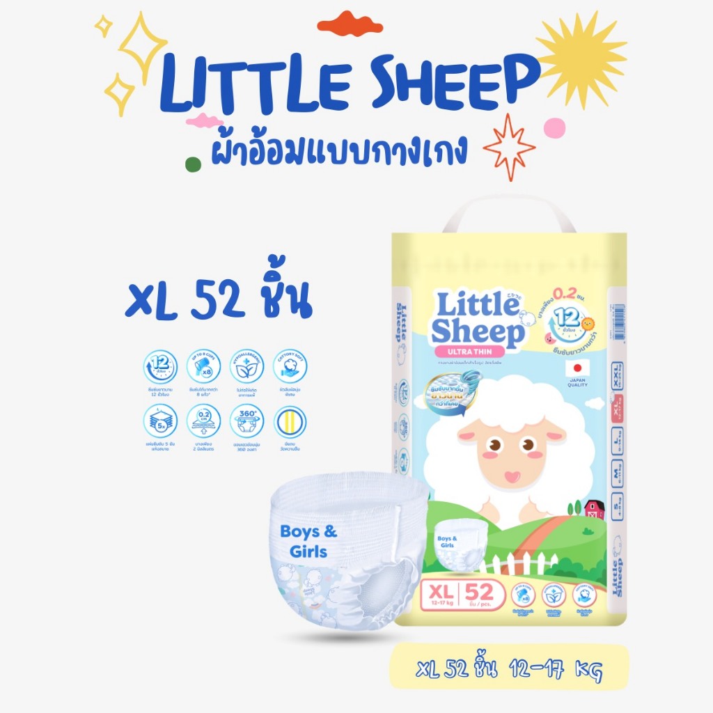 ( 1 แพ็ค ) แพมเพิสเด็ก Little Sheep ลิตเติ้ล ชีพ รุ่น Ultra Thin ผ้าอ้อมแบบกางเกง Size M-XXXL