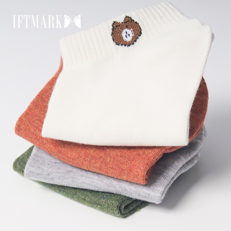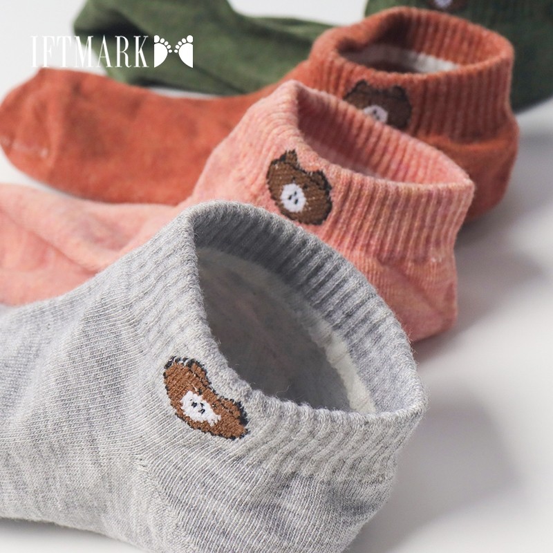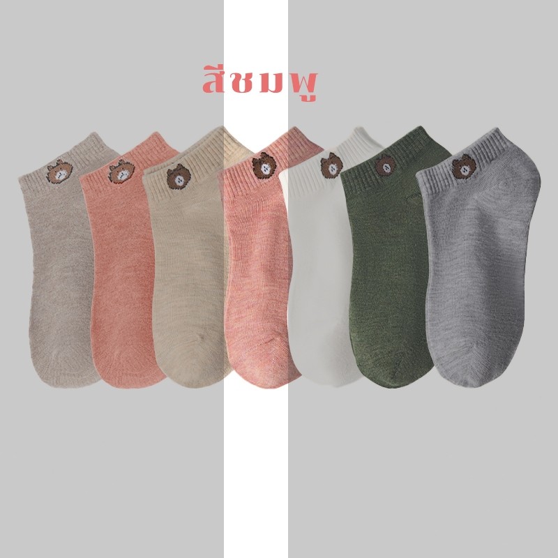 IFTMARK ถุงเท้าแฟชั่น 7 คู่ 7 สี ลายหมีน่ารัก สวมใส่สบาย ทนทาน เปลี่ยนสีได้ทุกวัน