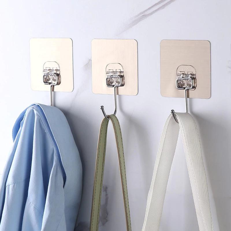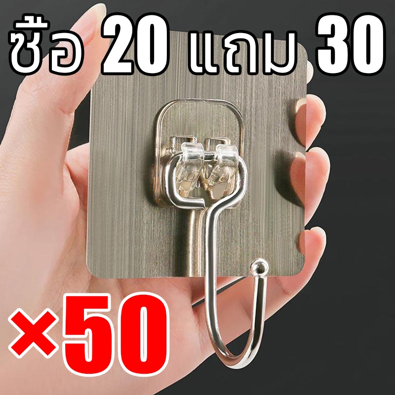 (ซื้อ 20 แถม 30) ตะขอขนาดใหญ่ 50 ชิ้น กาวในตัว ทำจาก PVC และสแตนเลส พื้นผิวลวดลายโลหะ เหมาะสำหรับใช้ในครัวและห้องครัว ที