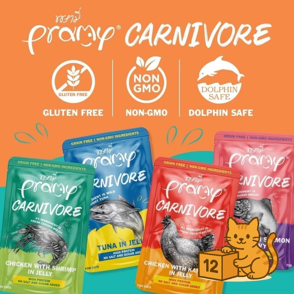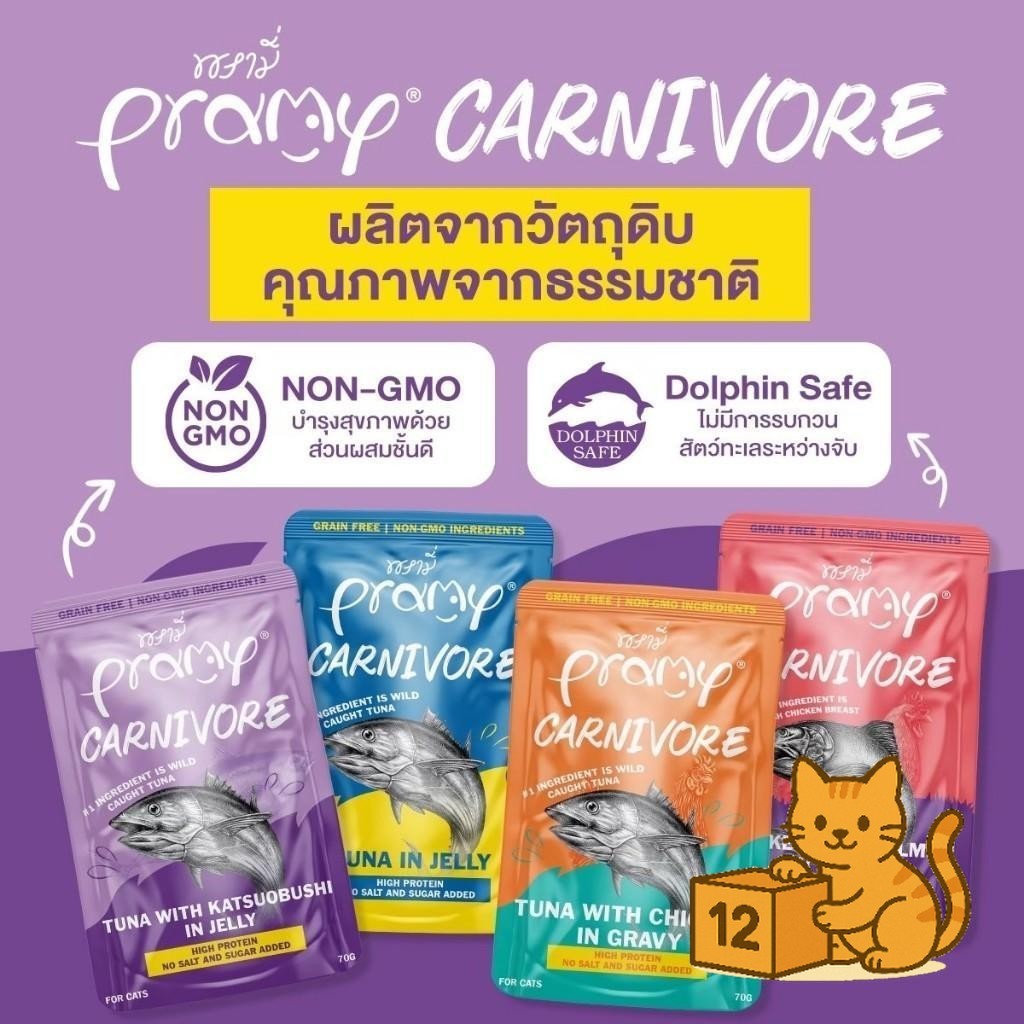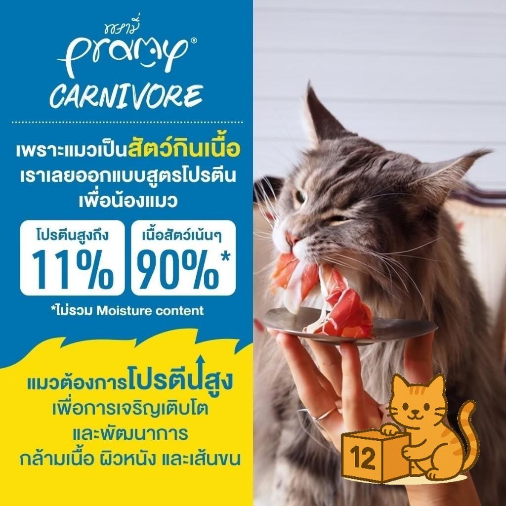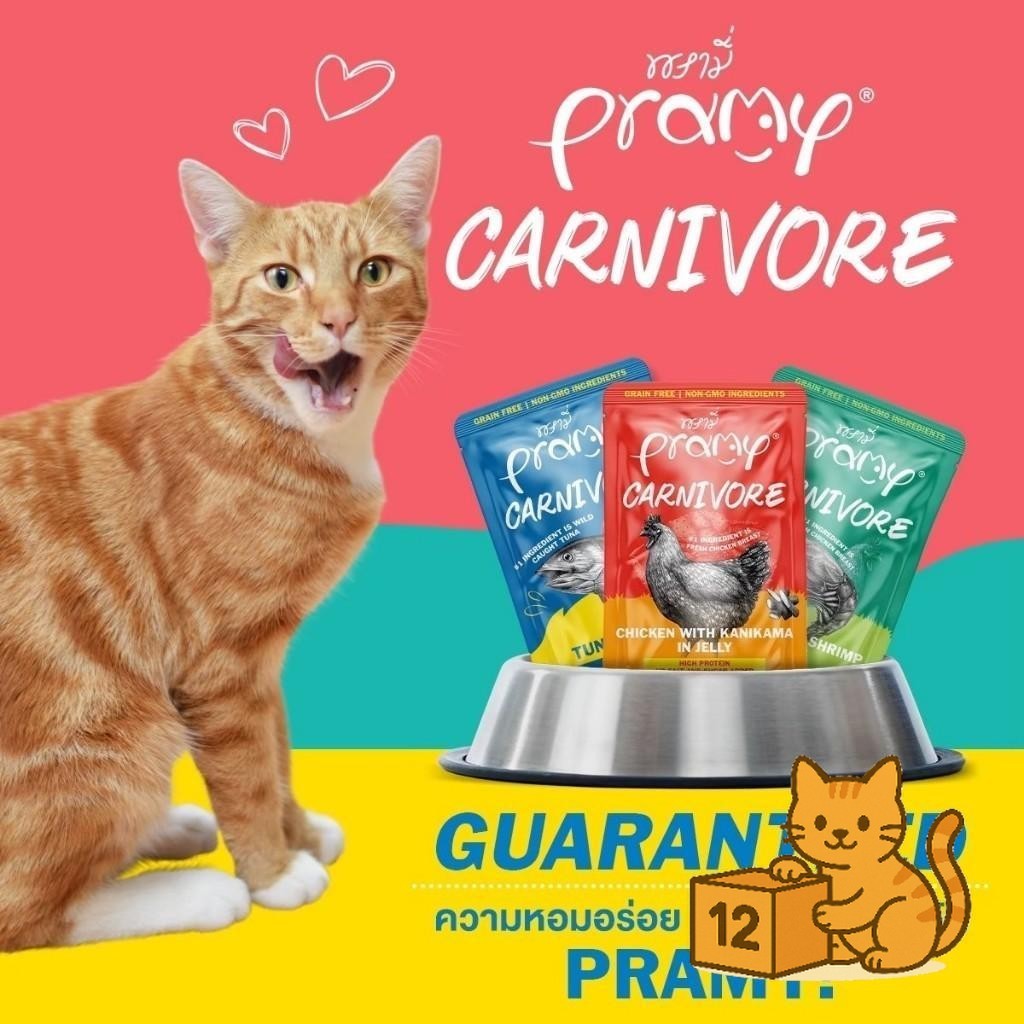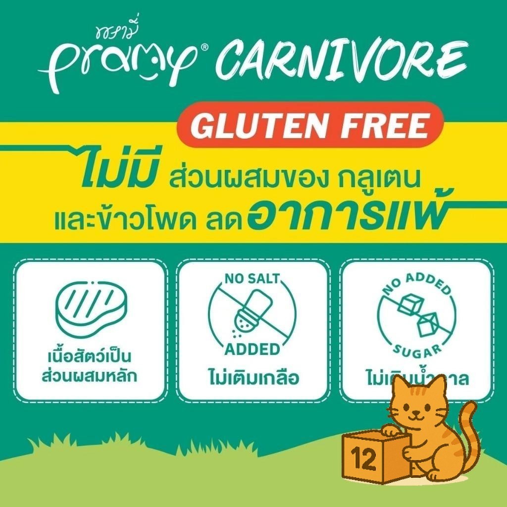 ( ยกโหล 12 ซอง ) Pramy Carnivore เปียกแมว พรามี่ คาร์นิวอร์ กลูเตนฟรี สูตรโปรตีน