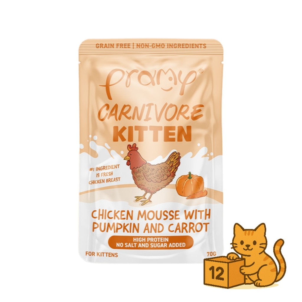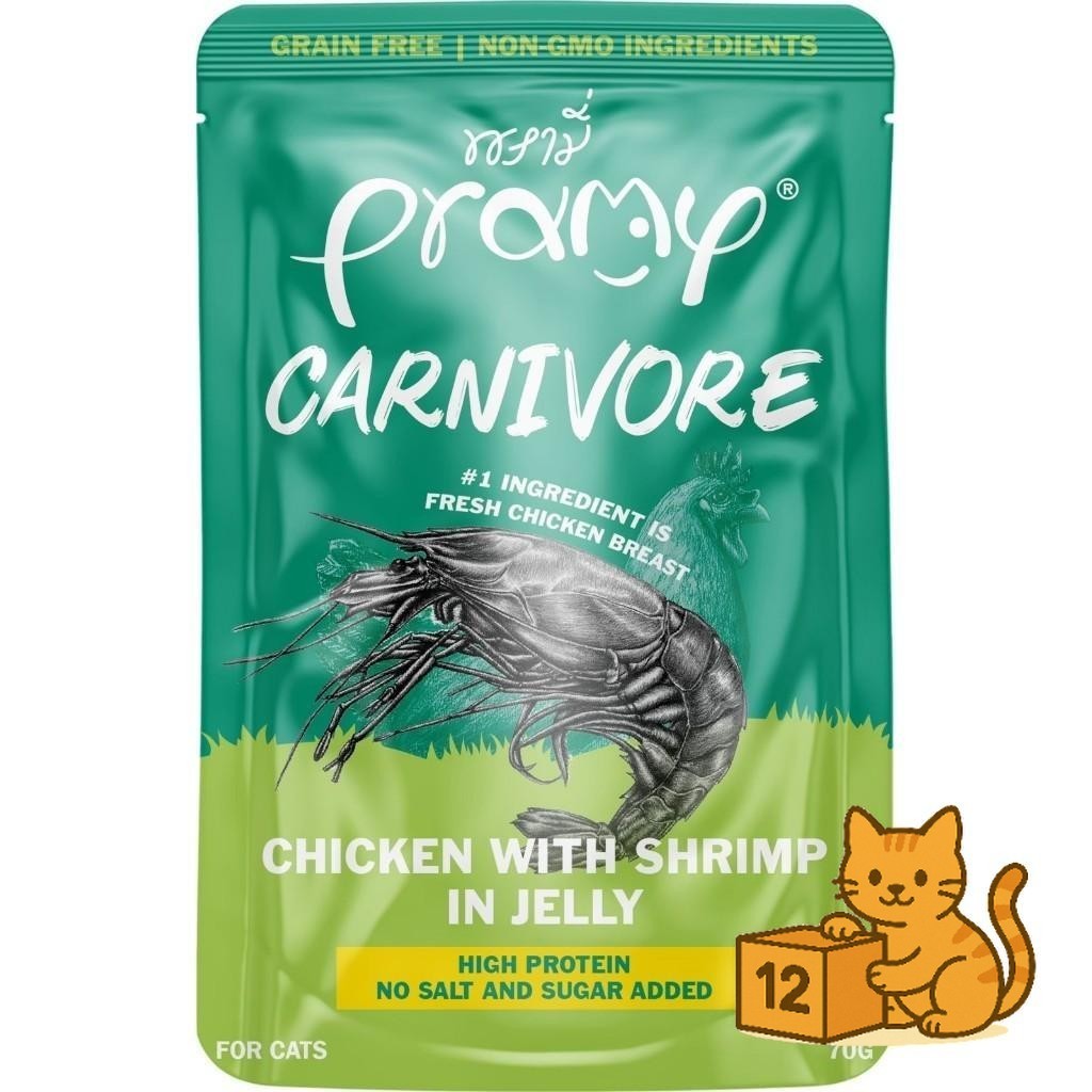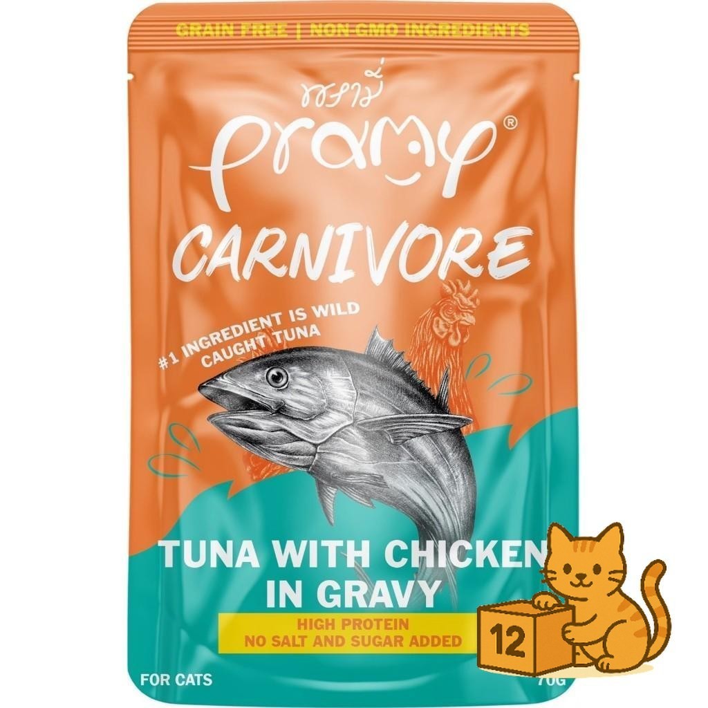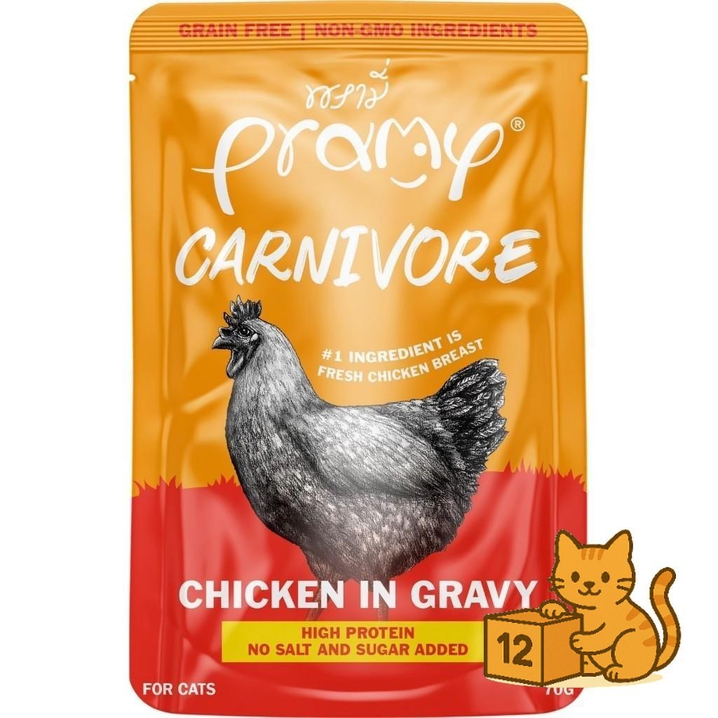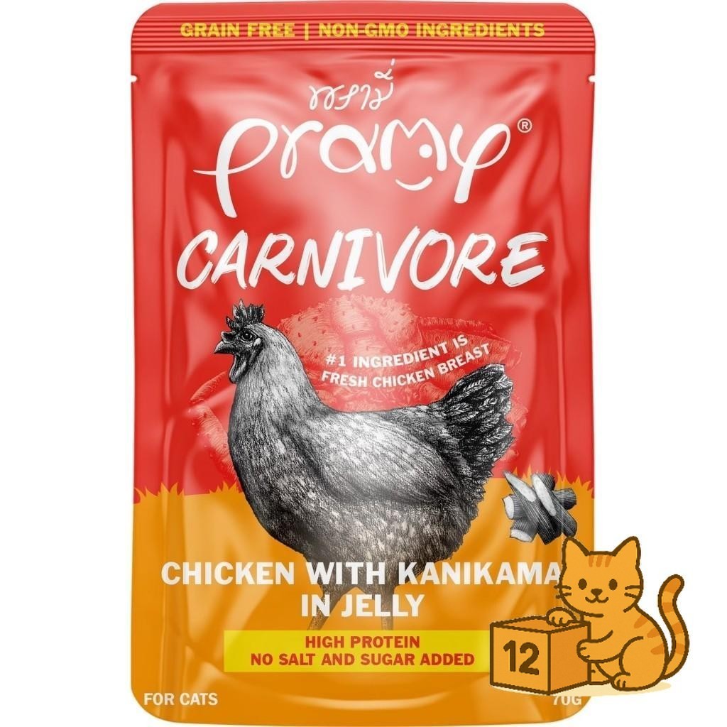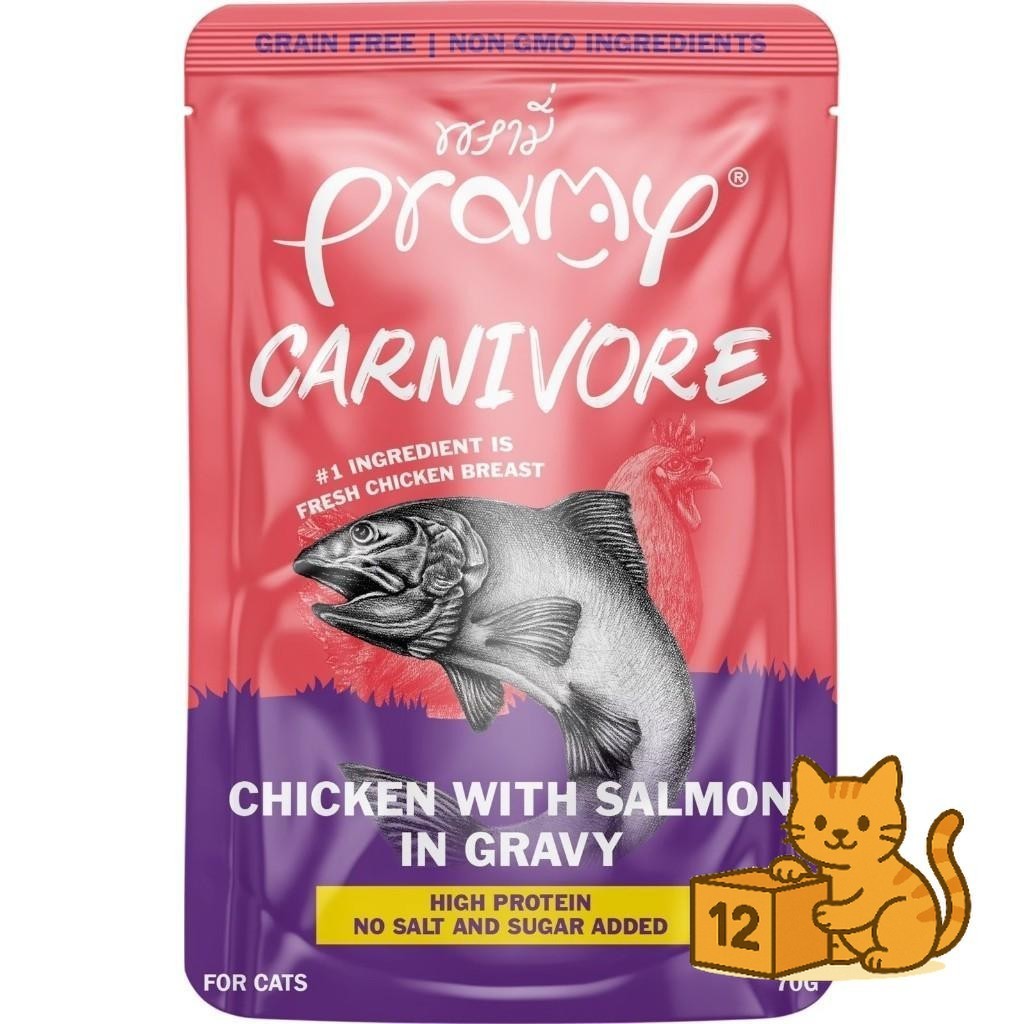 ( ยกโหล 12 ซอง ) Pramy Carnivore เปียกแมว พรามี่ คาร์นิวอร์ กลูเตนฟรี สูตรโปรตีน