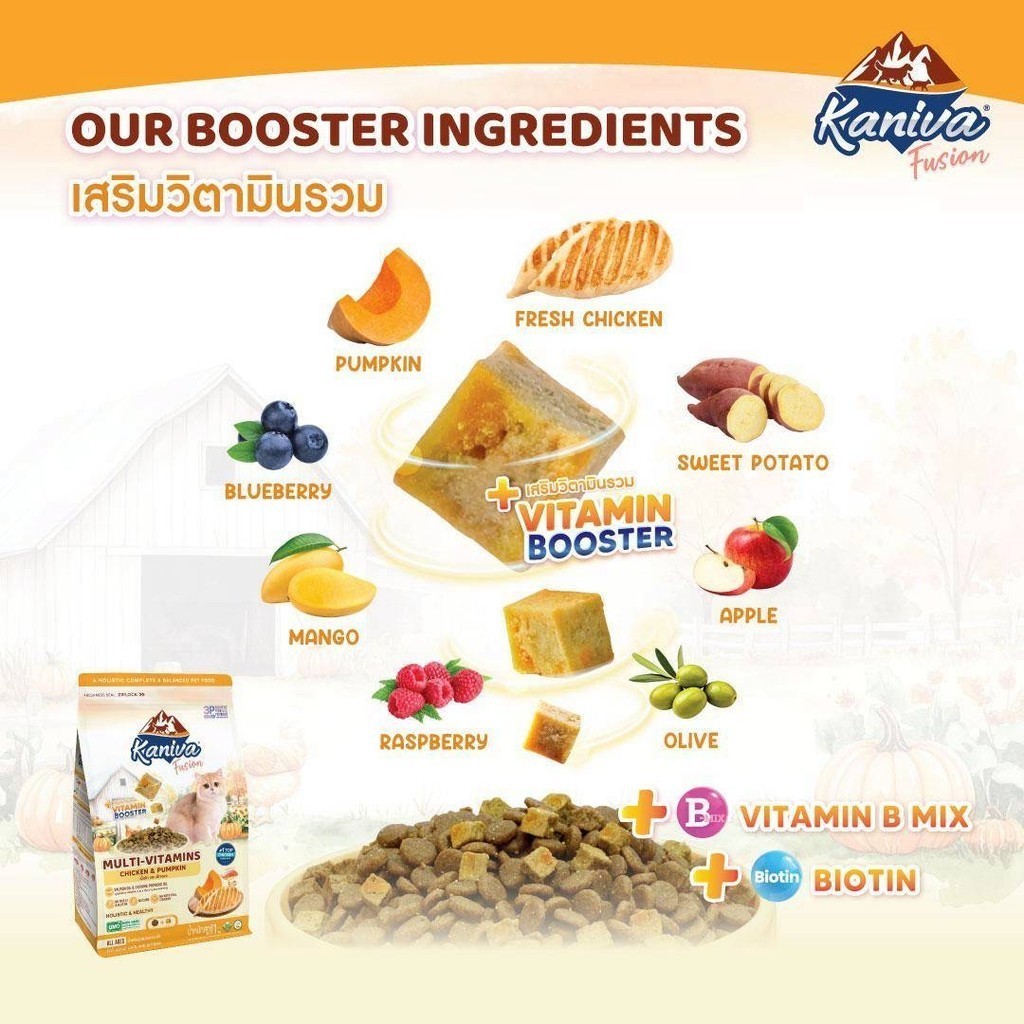 ( ยกกระสอบ ) Kaniva Fusion อาหาร เม็ดแมว คานิว่า ผสมบูสเตอร์ เคี้ยวง่าย ขนาด 6kg มีถุงแบ่งด้านใน